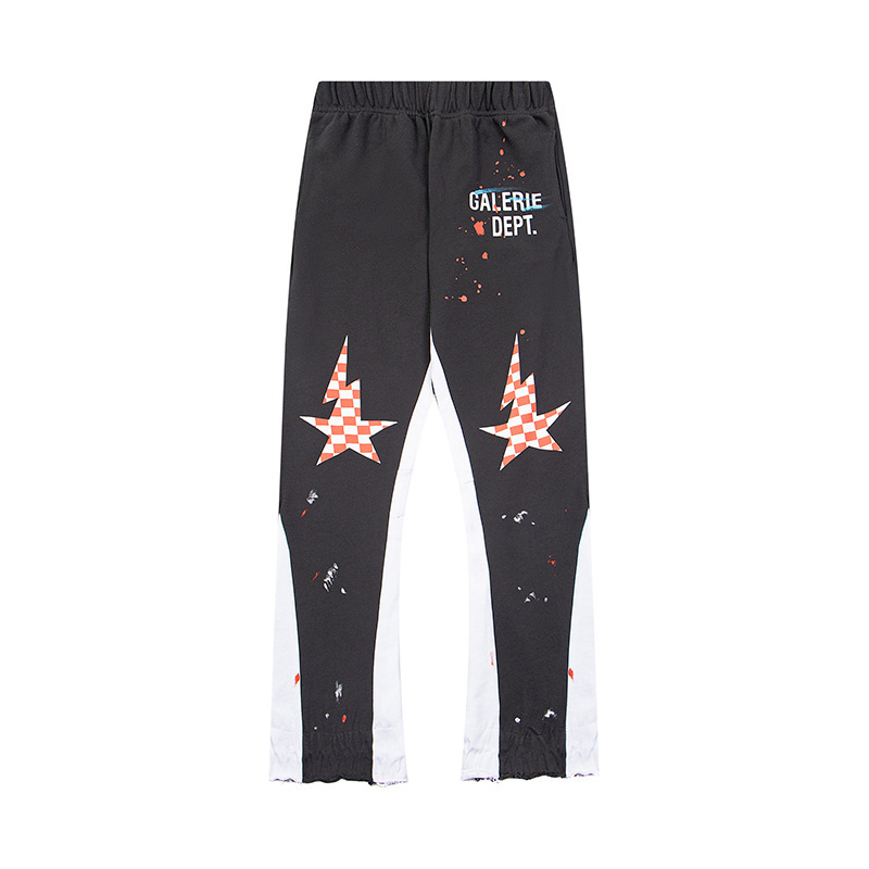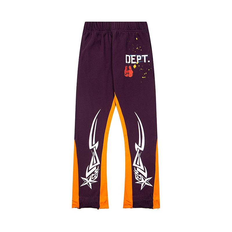 올바른 버전 갤러리 dept 손으로 그린 스플래시 잉크 스티칭 드로스트링 하이 스트리트 캐주얼 바지 마이크로 롱 바지 남성