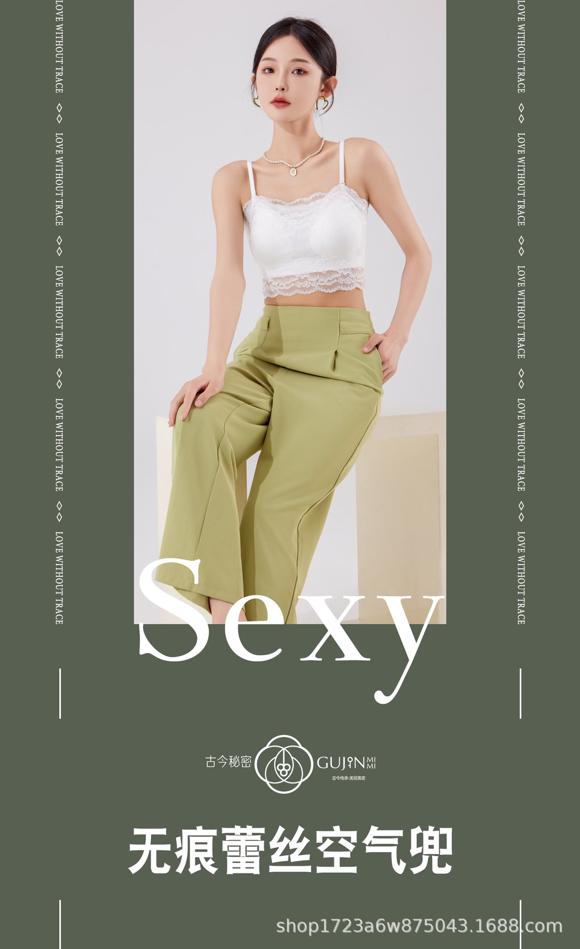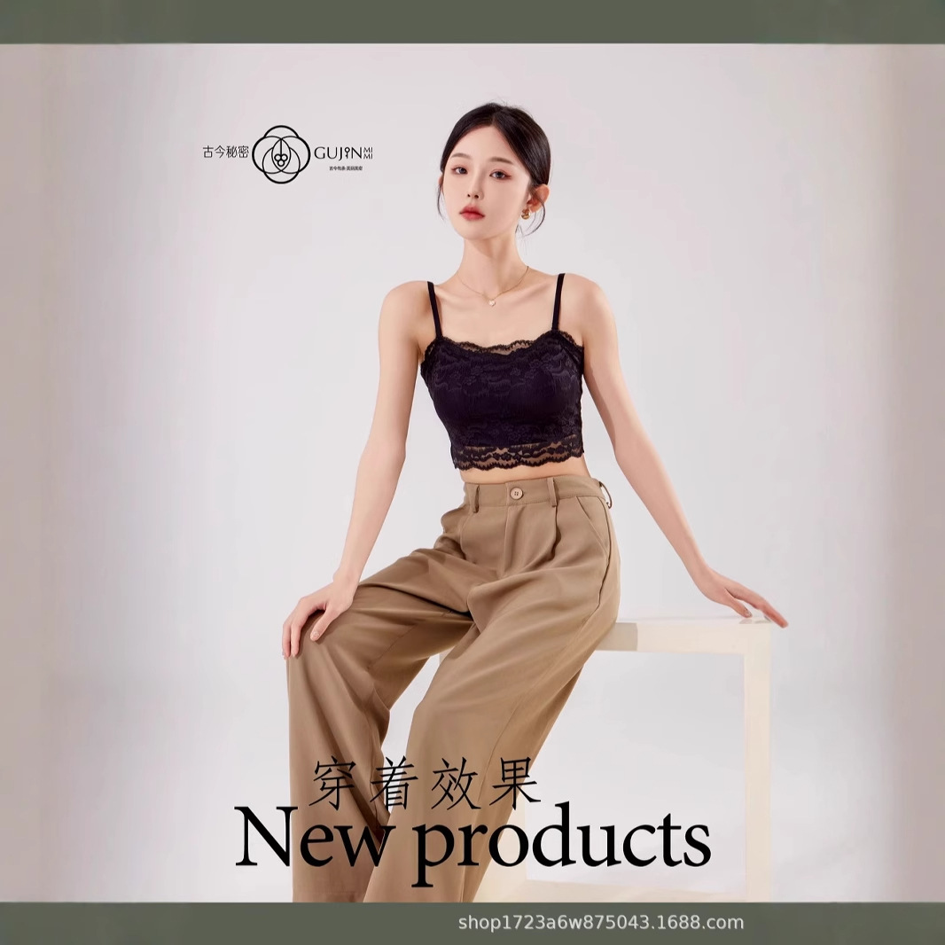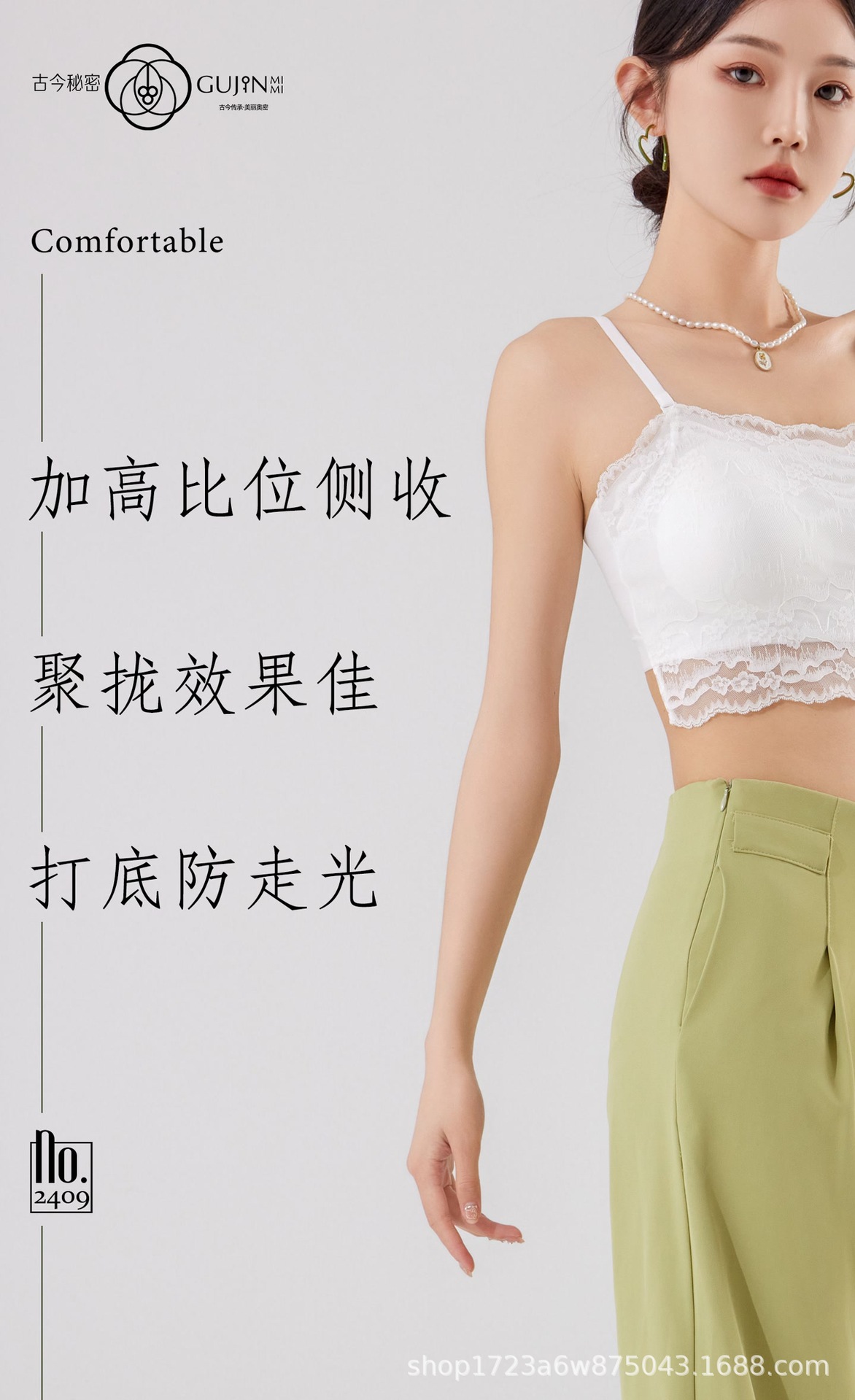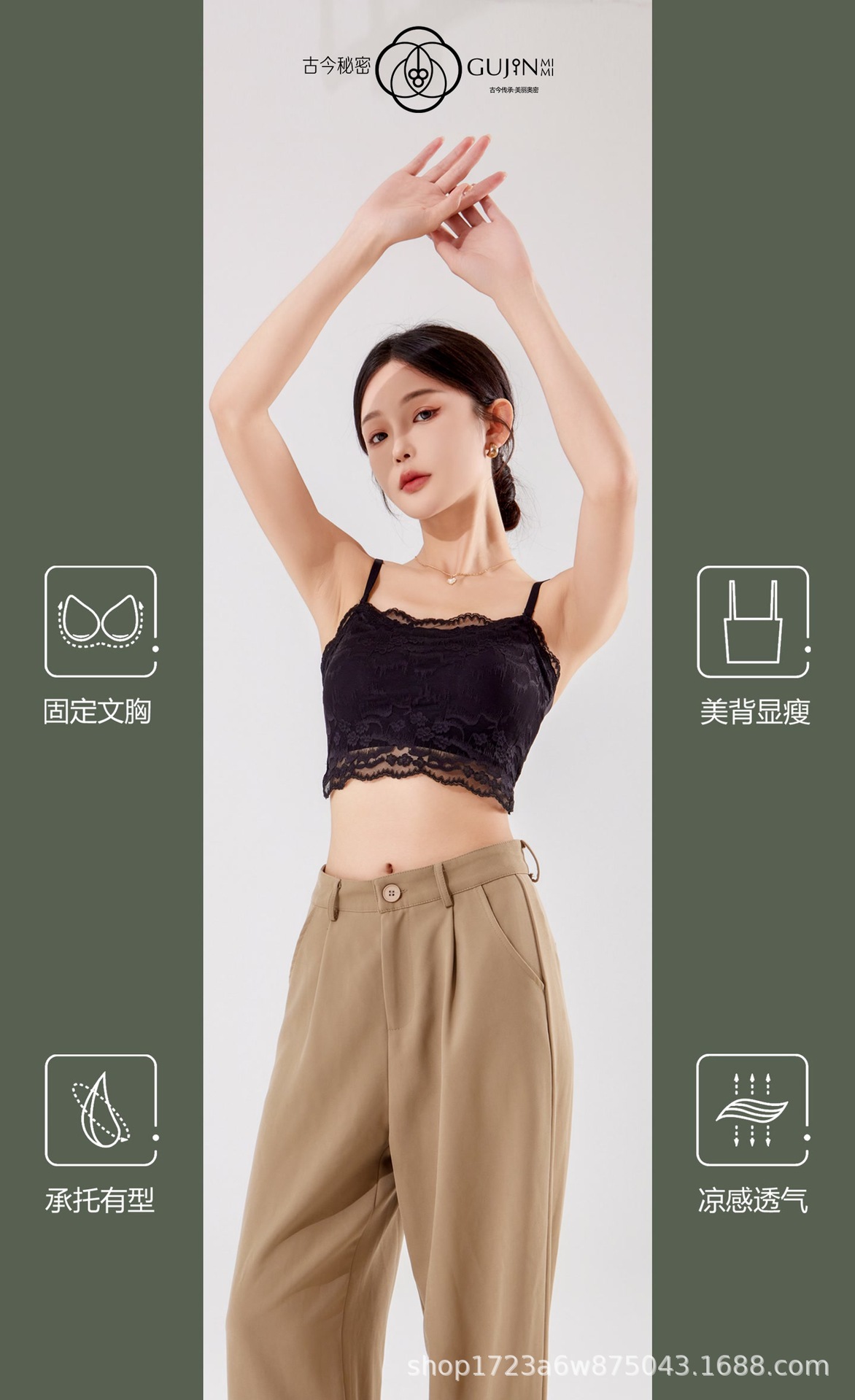 프렌치 레이스 고정 컵 얇은 어깨 스트랩 아름다운 백 칼라 안티 러닝 레이스 스트랩리스 조끼 없음 스틸 링 보이지 않음스토어 가기