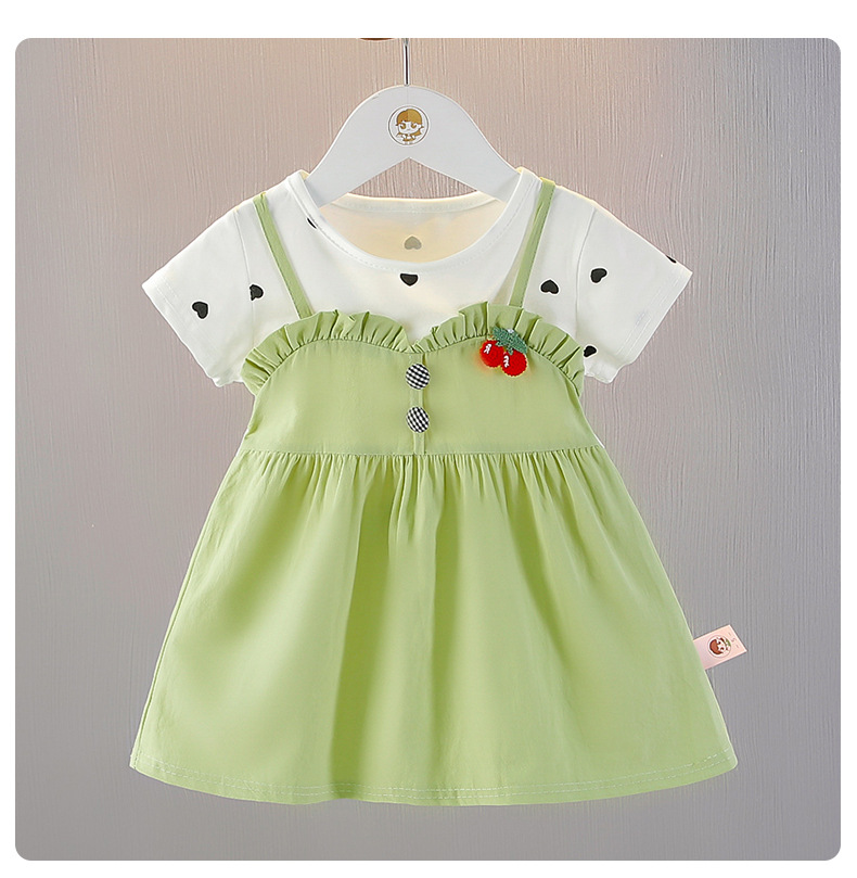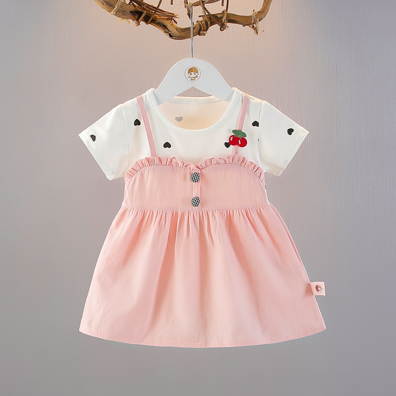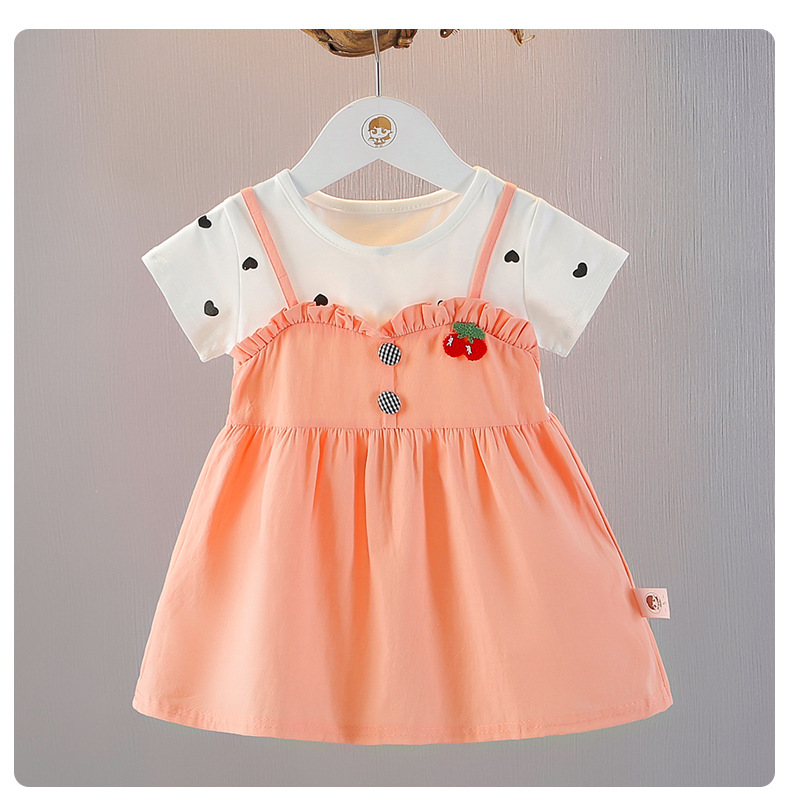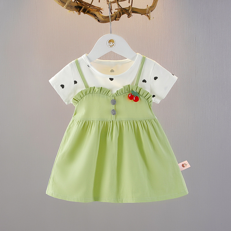 아기 소녀의 여름 원피스 반팔 원피스 소녀의 얇은 치마 여름 새로운 소녀의 세련된 스트랜드 원피스 트렌디스토어 가기