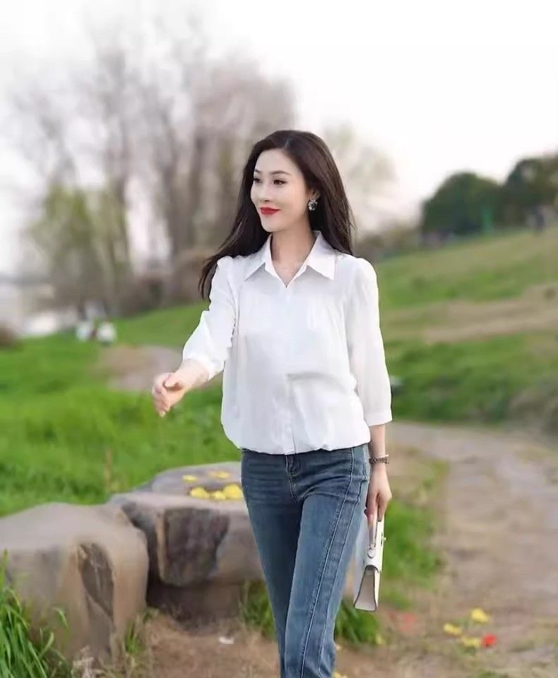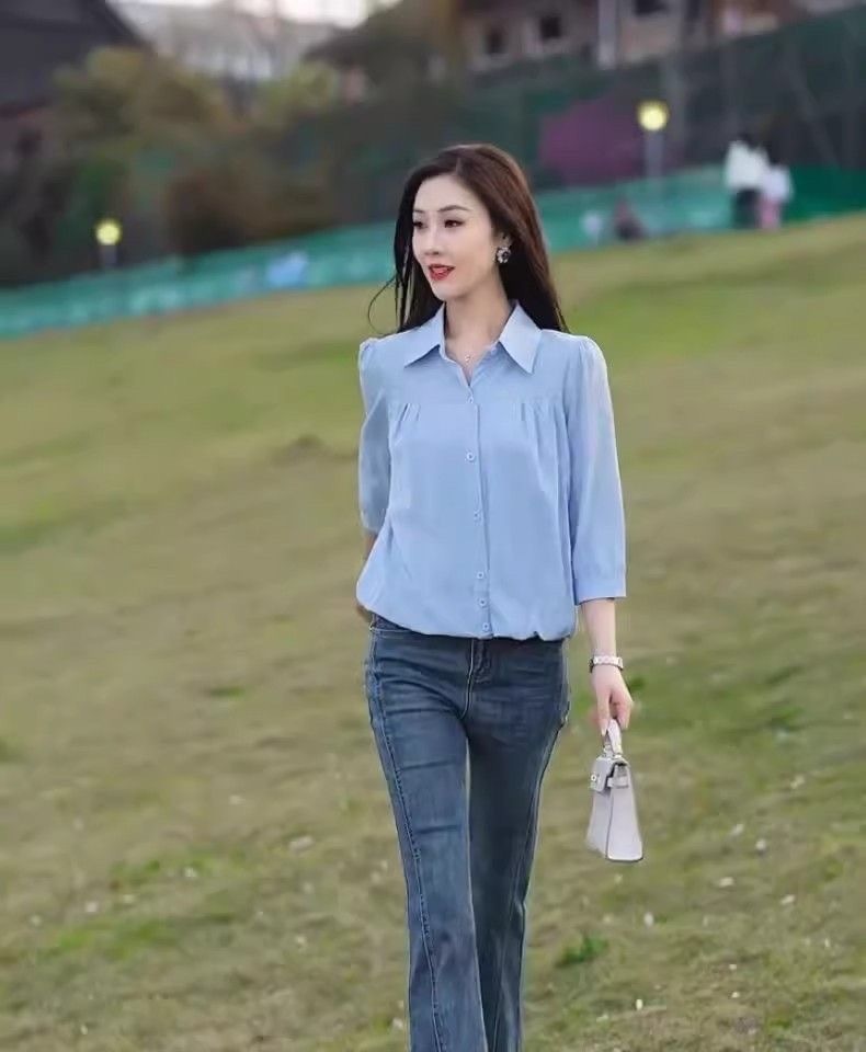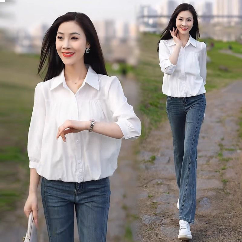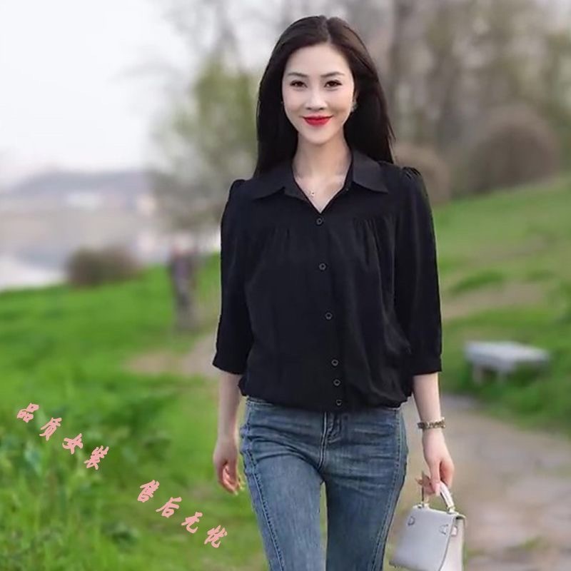 세련된 서양식 7 점 셔츠 봄과 여름 새로운 느슨한 배 덮음 2025 슬리밍 캐주얼 시대 감소 작은 셔츠스토어 가기