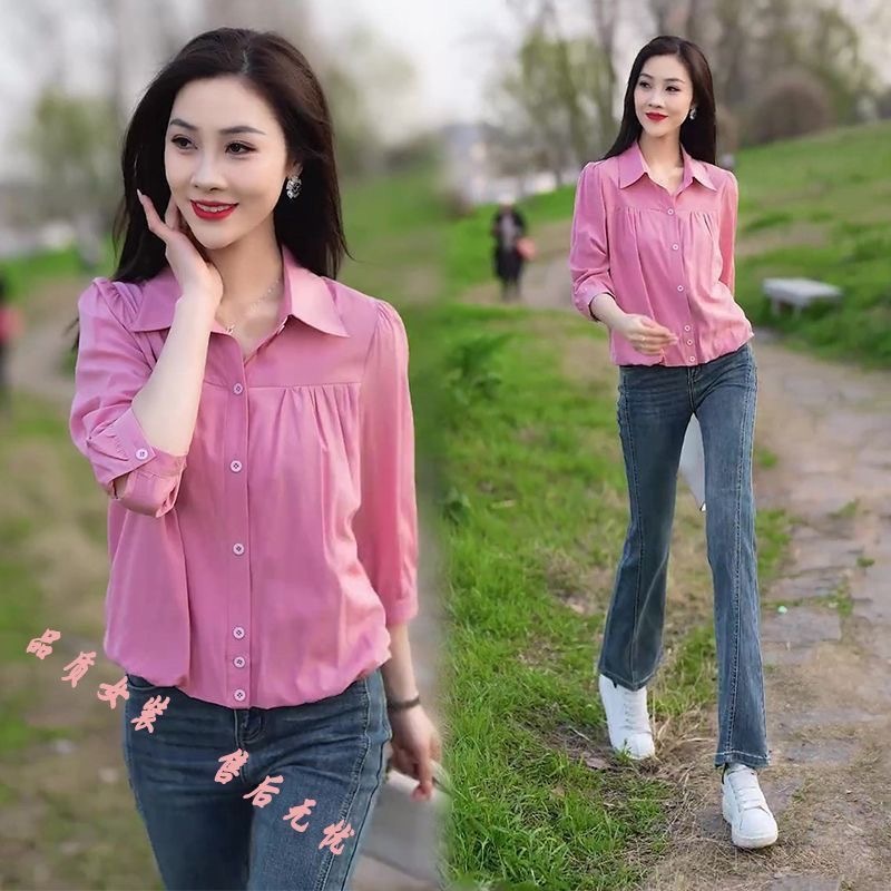 세련된 서양식 7 점 셔츠 봄과 여름 새로운 느슨한 배 덮음 2025 슬리밍 캐주얼 시대 감소 작은 셔츠