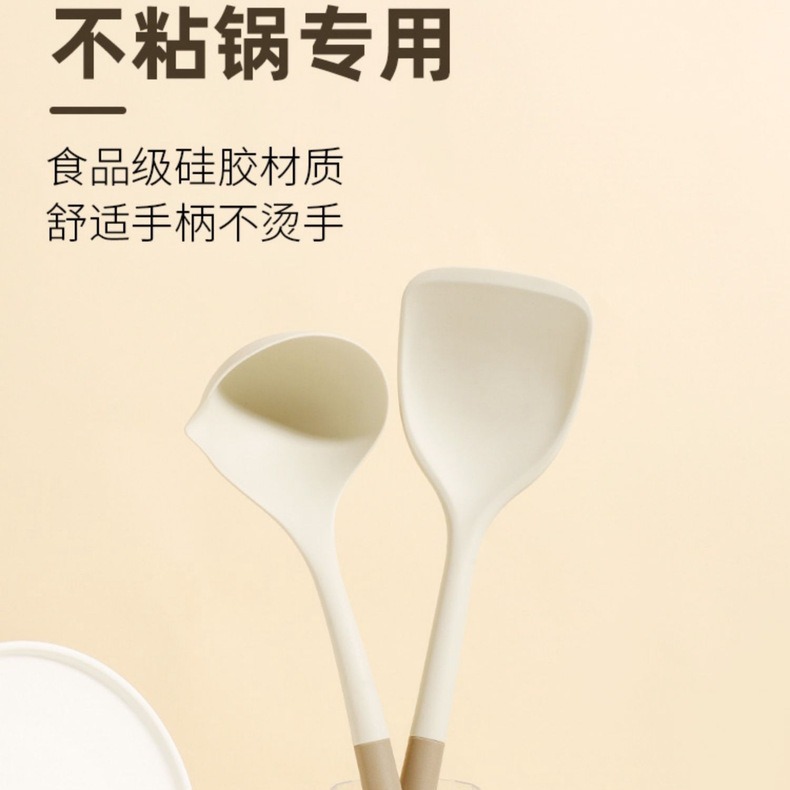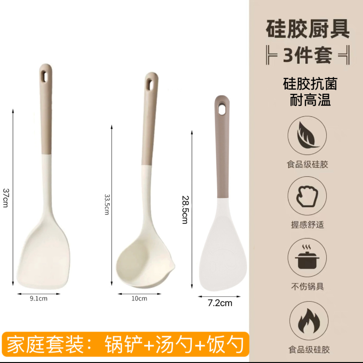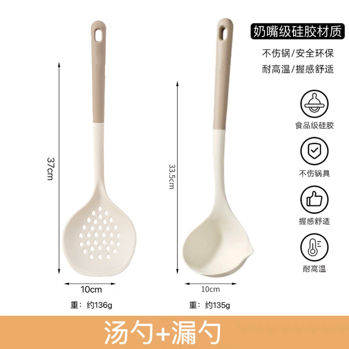 • [손잡이 연장/3개] 젖꼭지급 실리콘 대형 스푼 + 대형 주걱 + 소쿠리 [우드 화이트]★♜