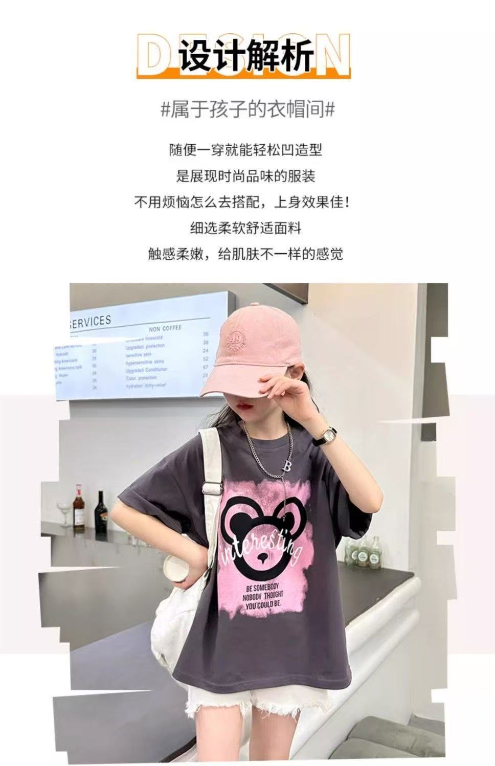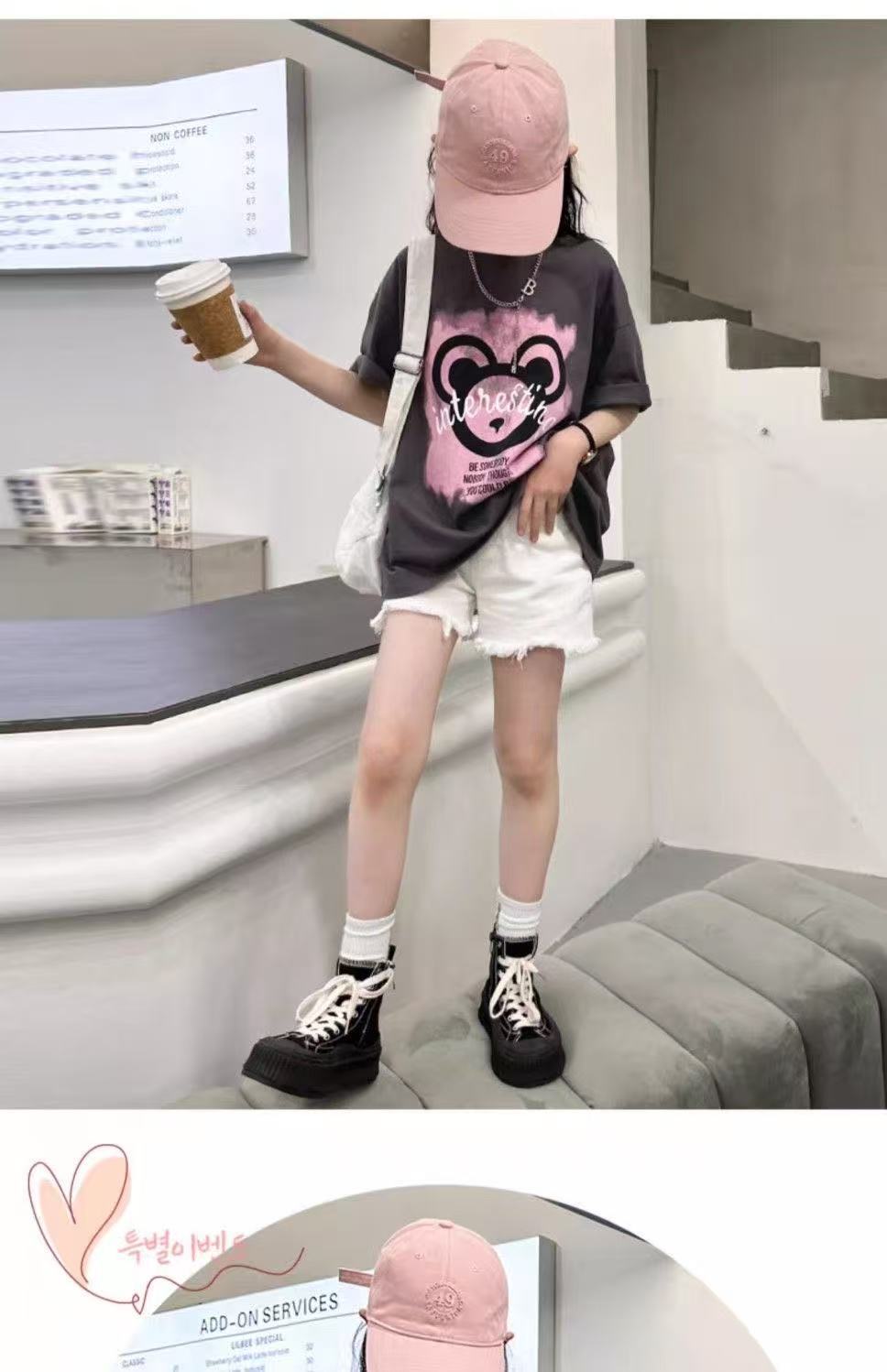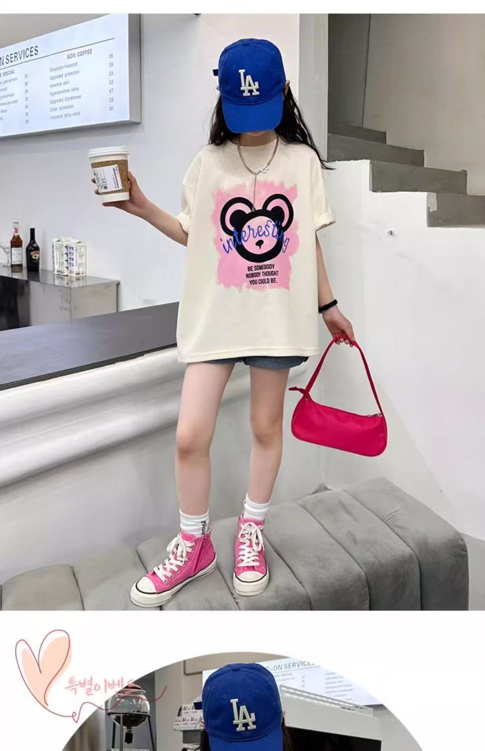 순면 여아 패셔너블하고 다재다능한 중대형 아동 캐주얼 하의 상의 트렌디한 ins2025 아동용 신작 반팔 티셔츠스토어 가기