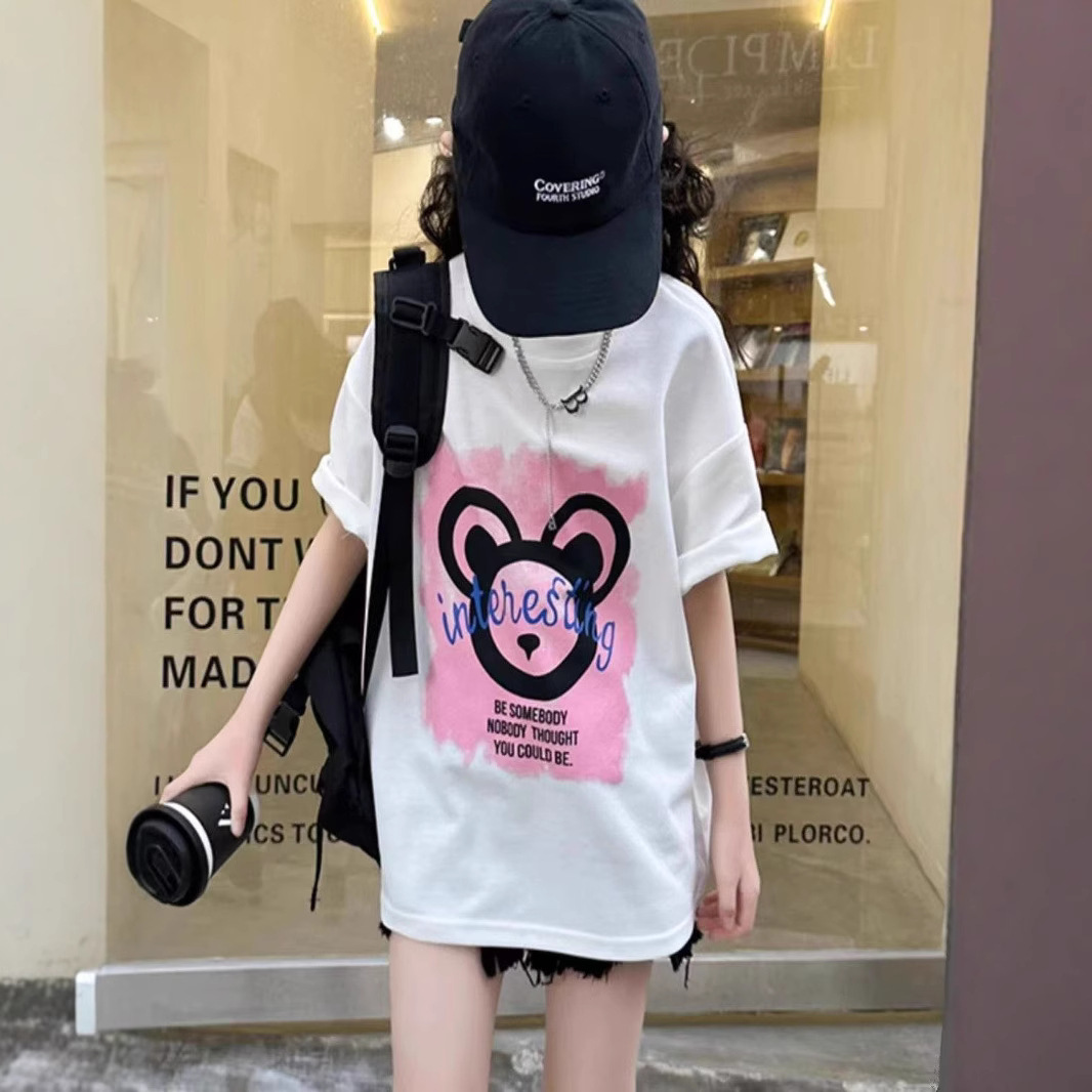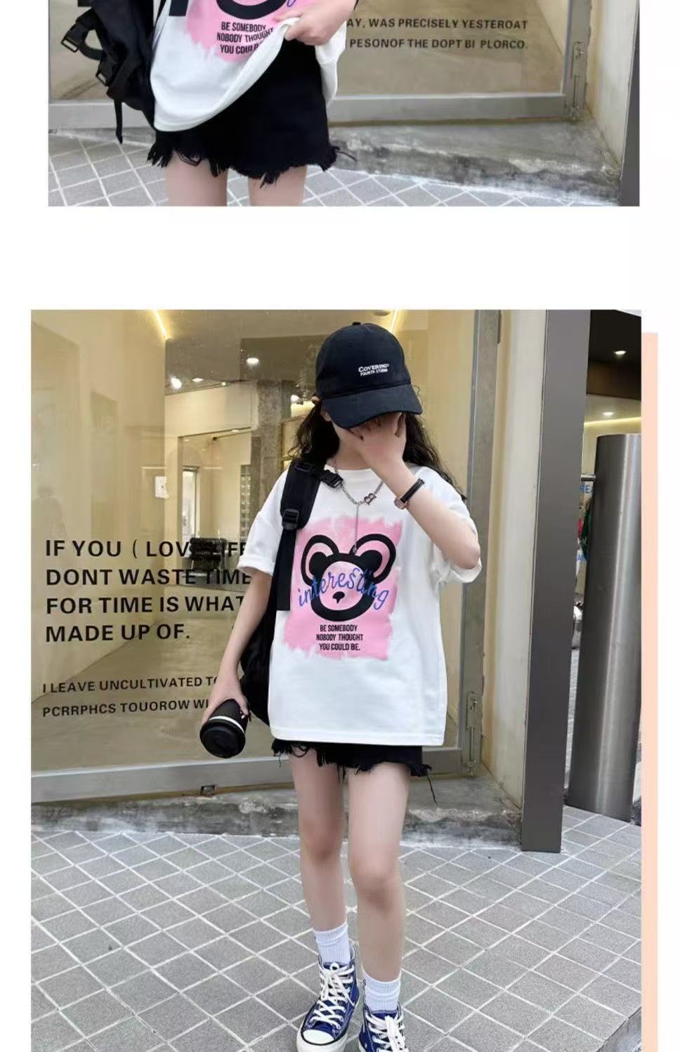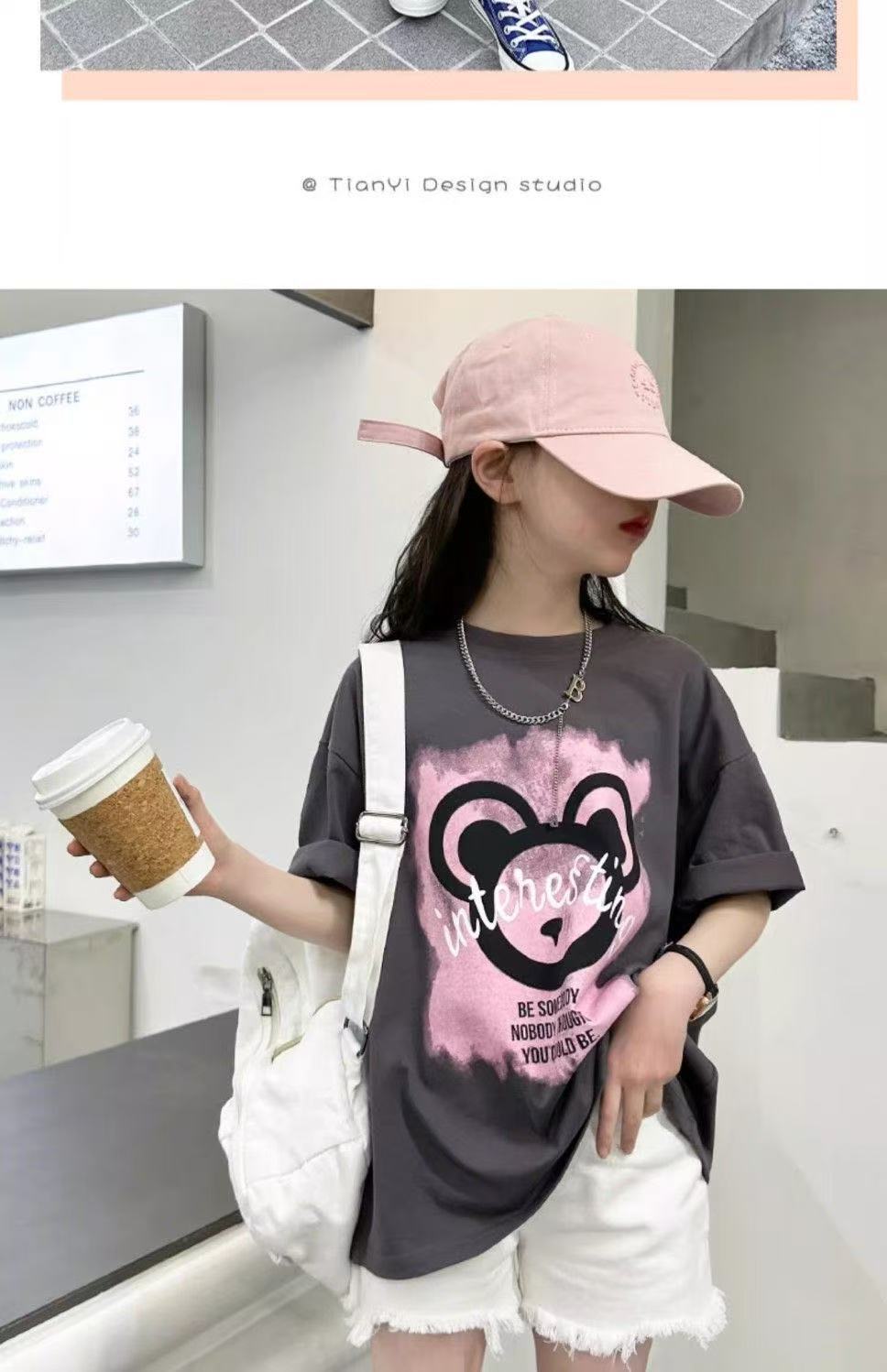 순면 여아 패셔너블하고 다재다능한 중대형 아동 캐주얼 하의 상의 트렌디한 ins2025 아동용 신작 반팔 티셔츠스토어 가기