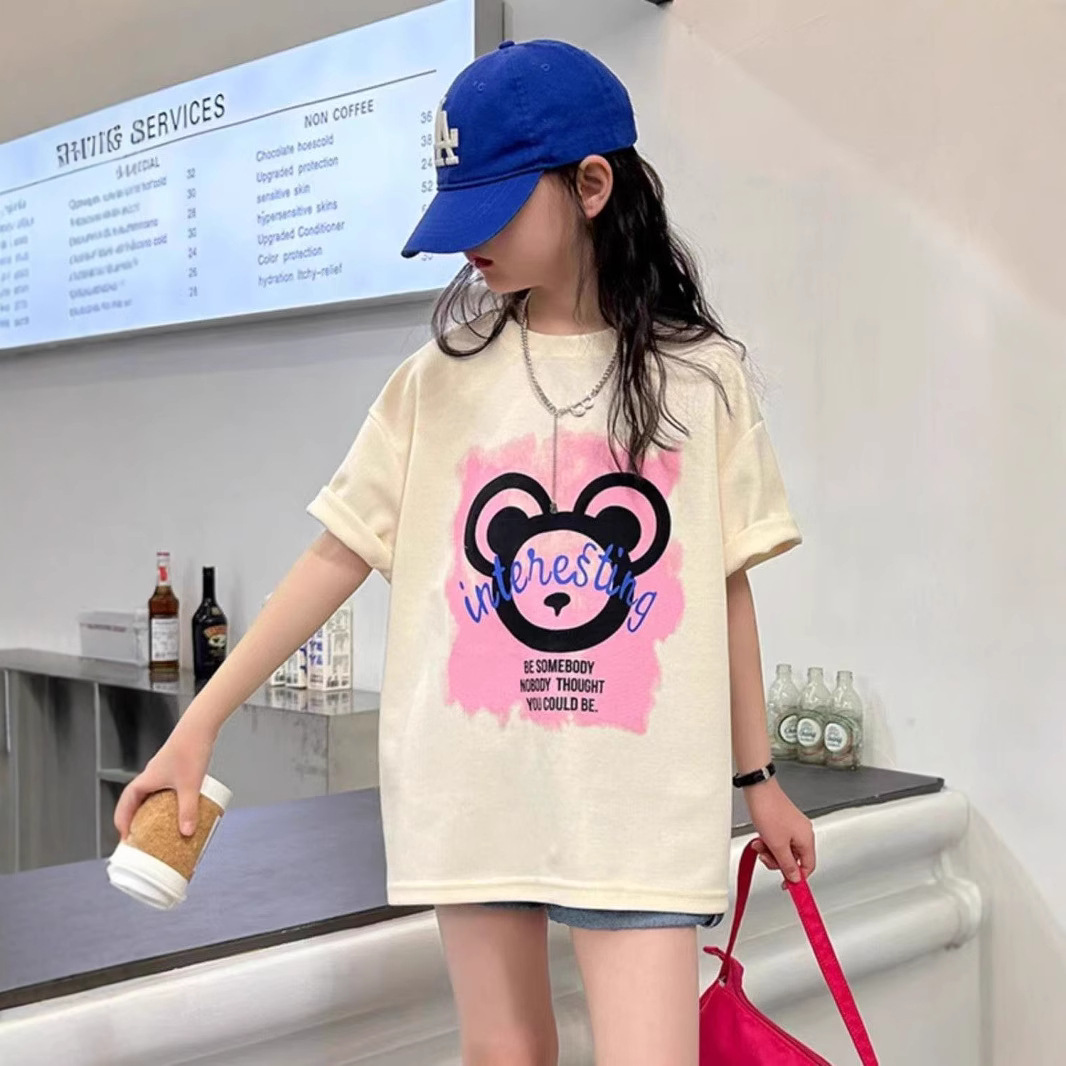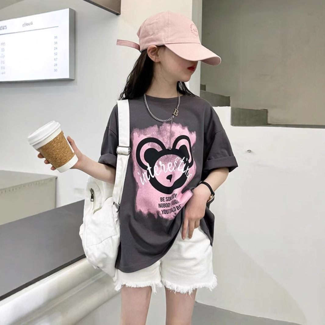 순면 여아 패셔너블하고 다재다능한 중대형 아동 캐주얼 하의 상의 트렌디한 ins2025 아동용 신작 반팔 티셔츠