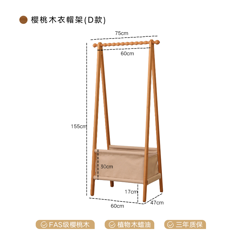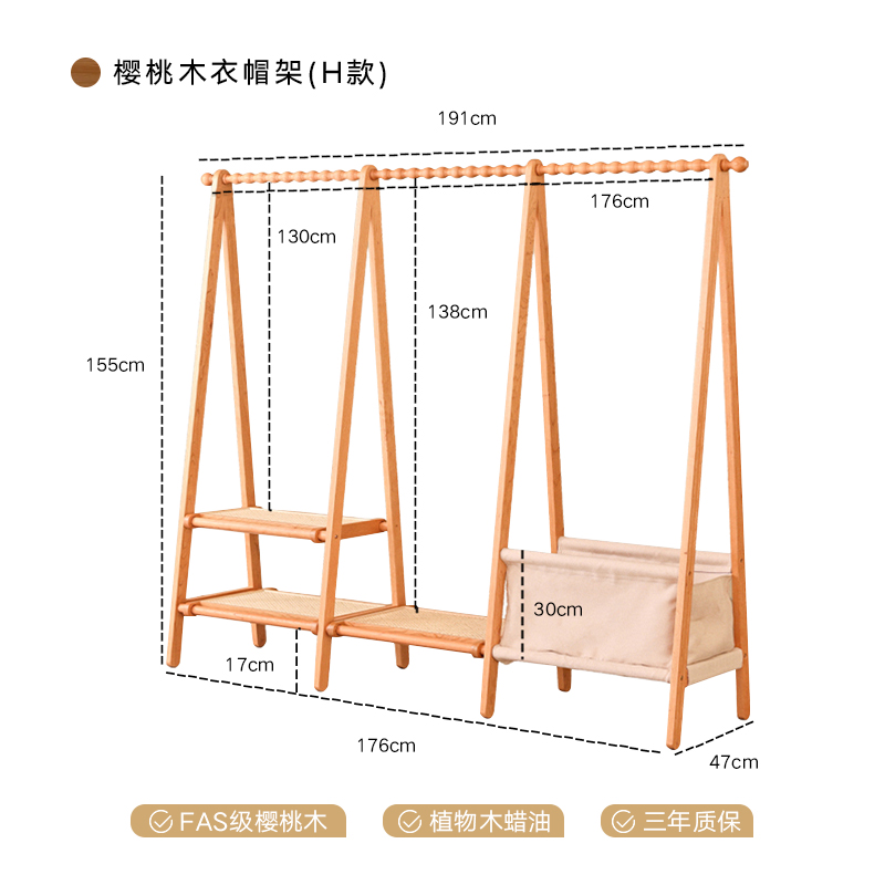 • H형 옷걸이(단층조합+복층+더러운옷바구니) [FAS등급 벚나무]