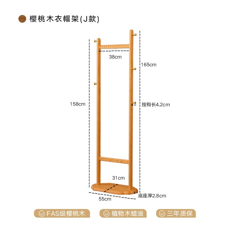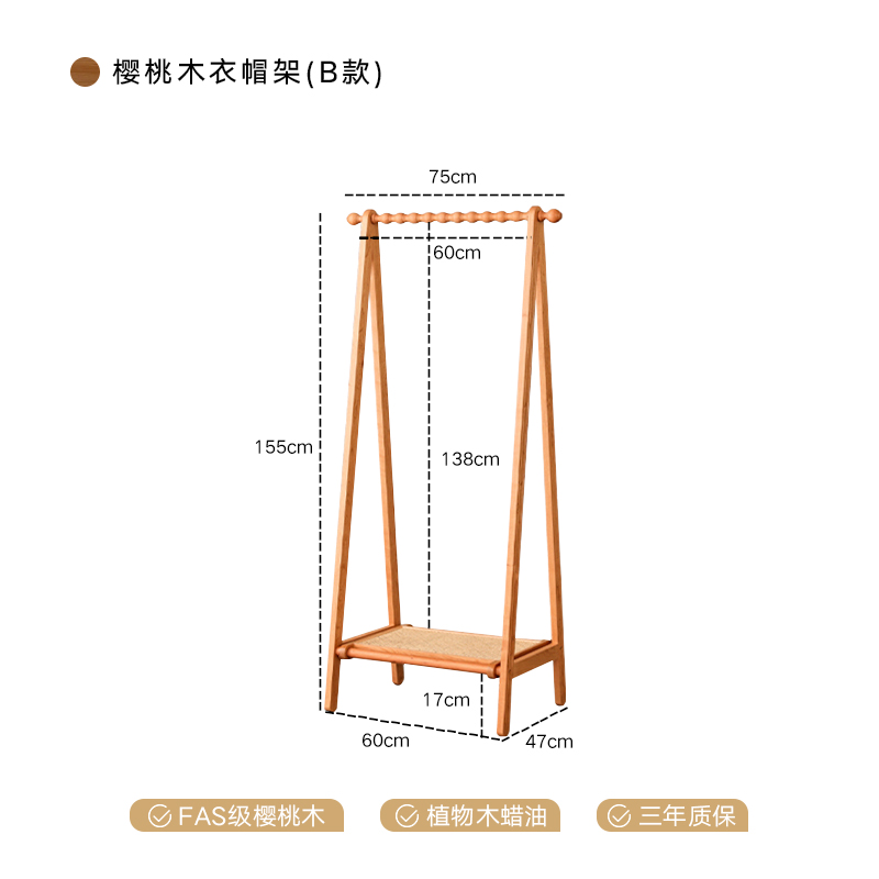 • B형 옷걸이(단층 버전) [FAS 등급 벚나무]