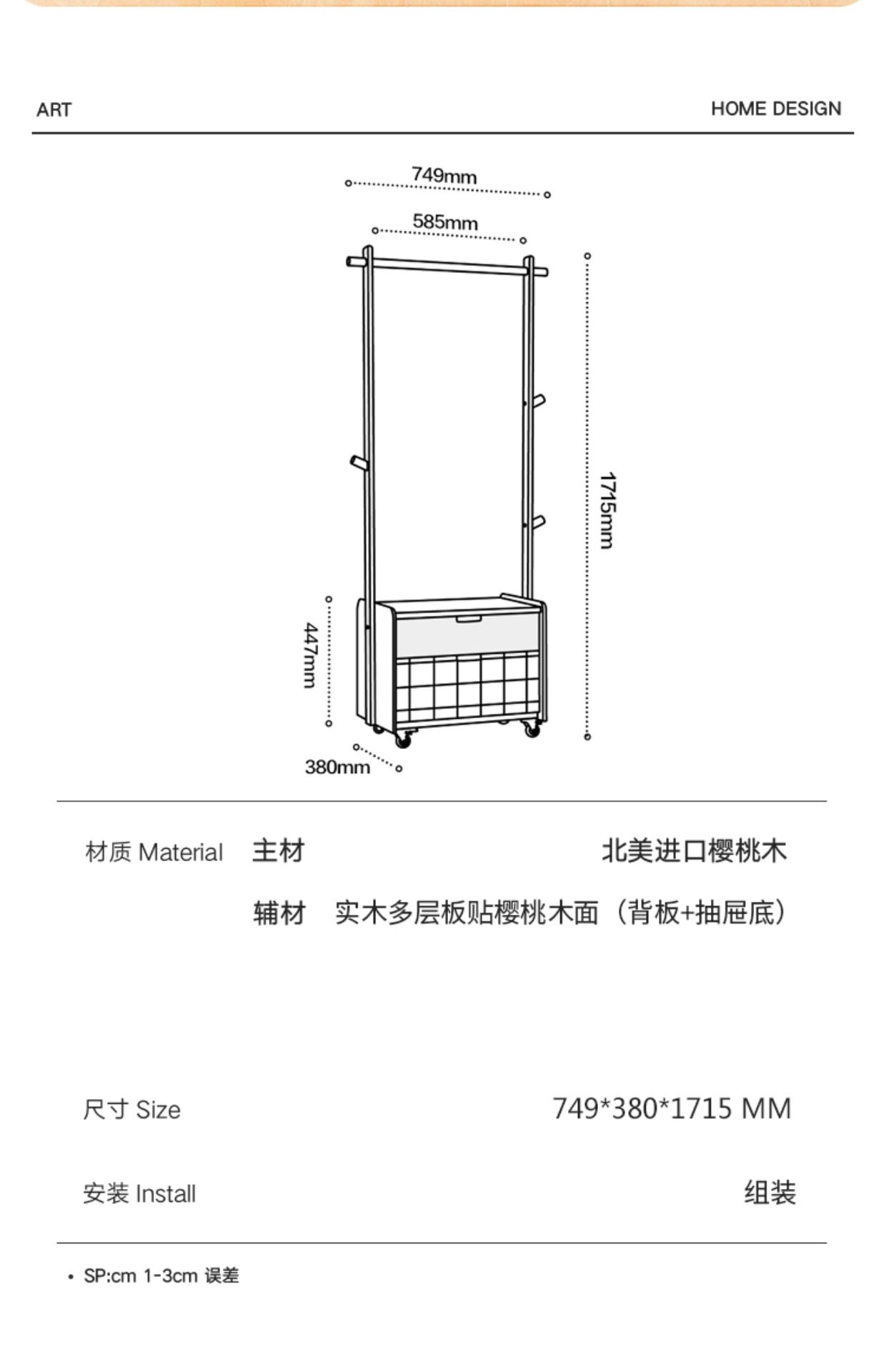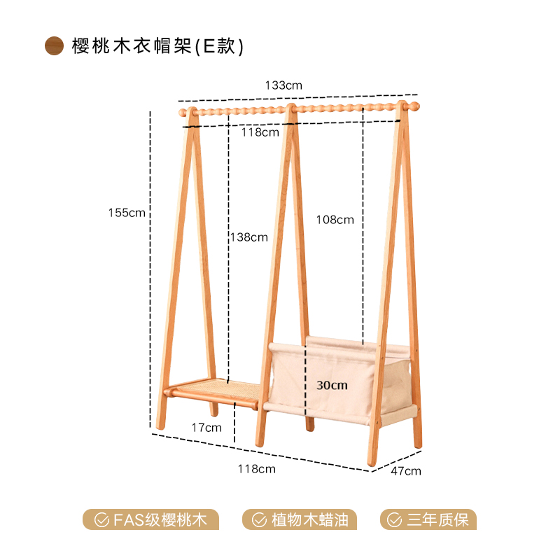 • E형 옷걸이(단층조합+더러운옷바구니) [FAS등급 벚나무]