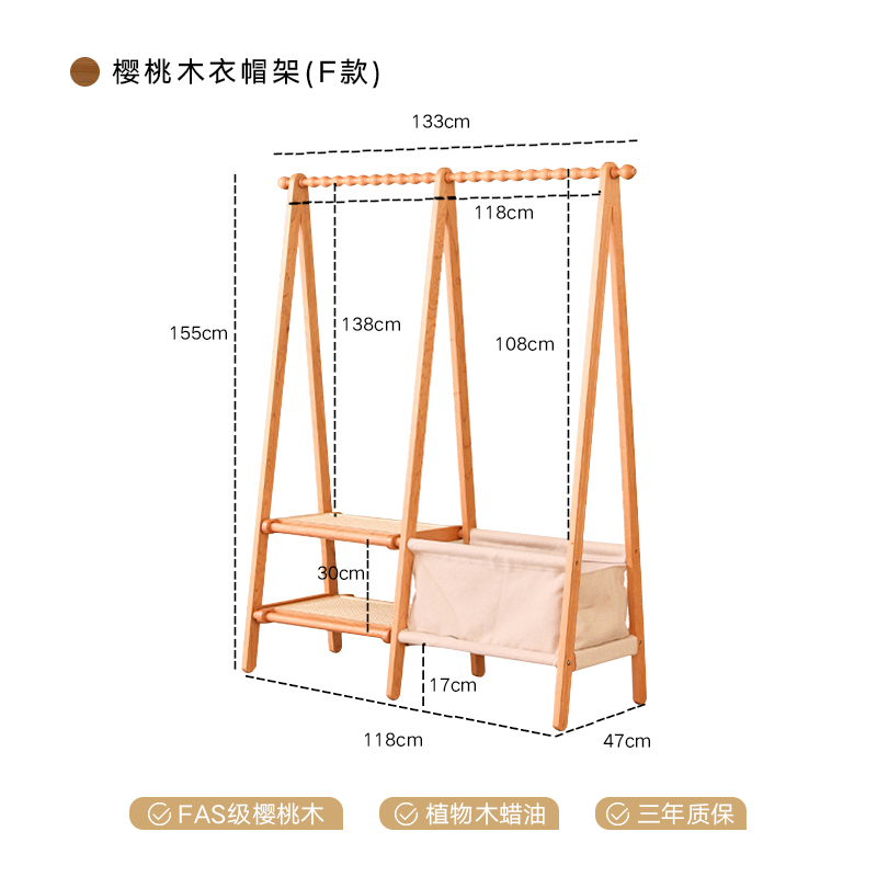 • F형 옷걸이(복층조합+더러운옷바구니) [FAS등급 벚나무]