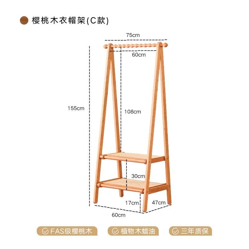 • C형 옷걸이(복층 버전) [FAS 등급 벚나무]