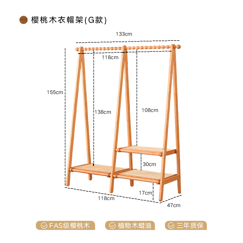 • G형 옷걸이(단층조합+복층) [FAS등급 벚나무]