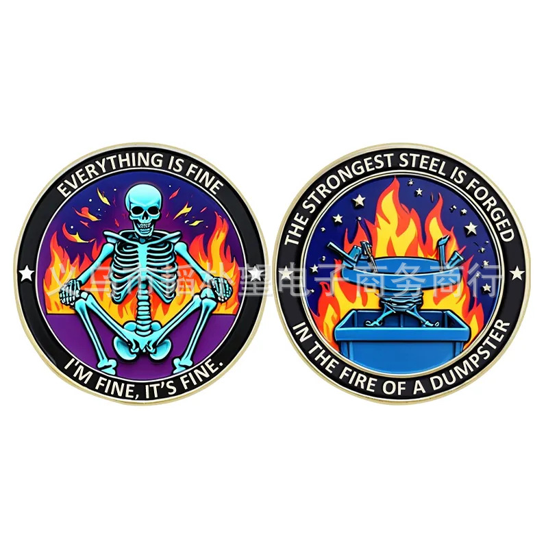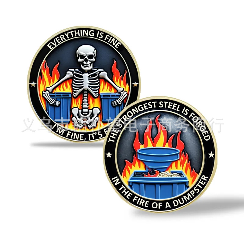 국경 간 인기 스타일 스켈레톤 기계식 쓰레기통 화재 화재 챌린지 코인 금속 아연 합금스토어 가기