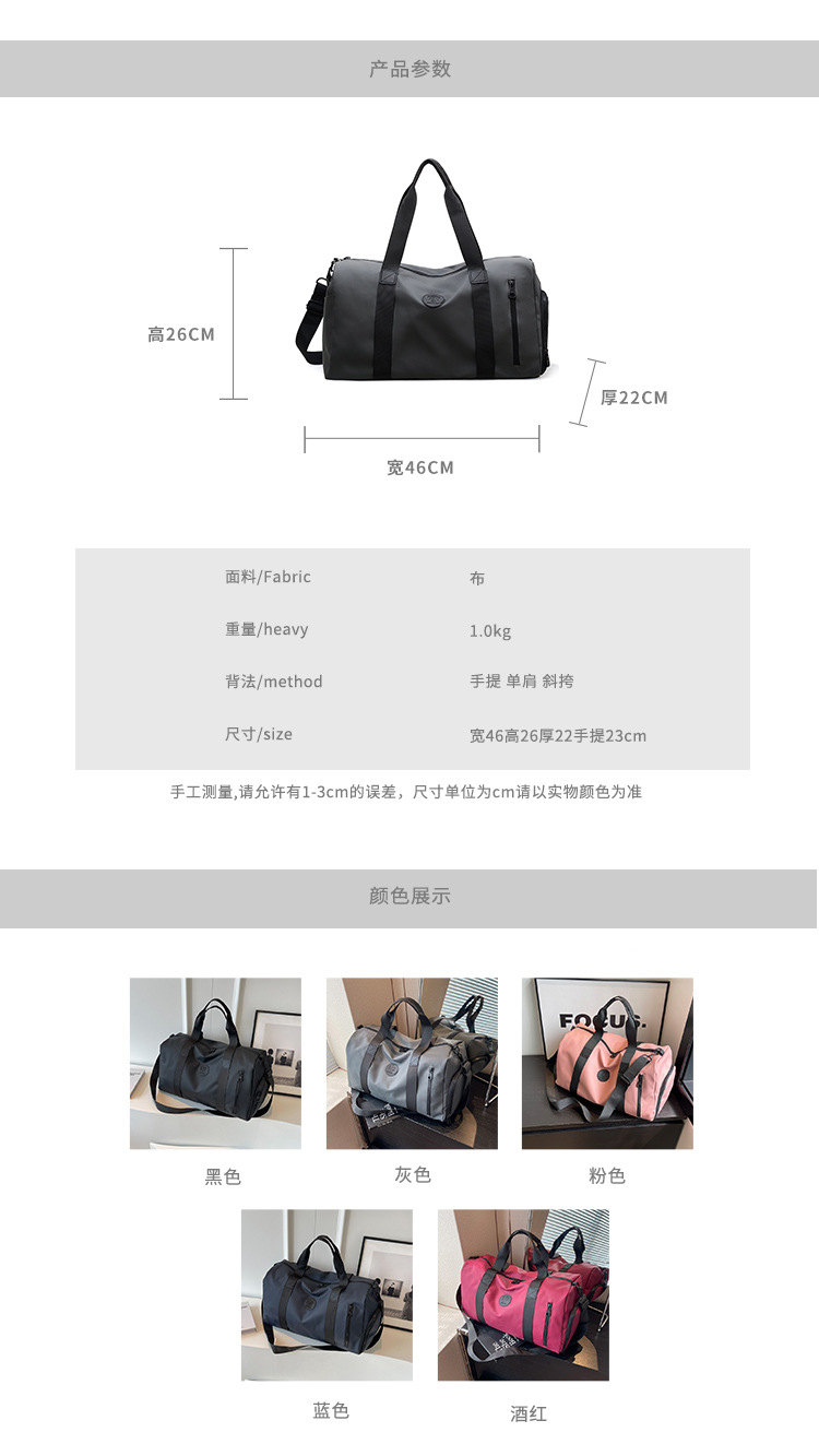 단거리 여행 가방 여성용 경량 대용량 건조하고 젖은 별도의 스포츠 피트니스 가방 방수 휴대용 옥스포드 천 수하물 가방