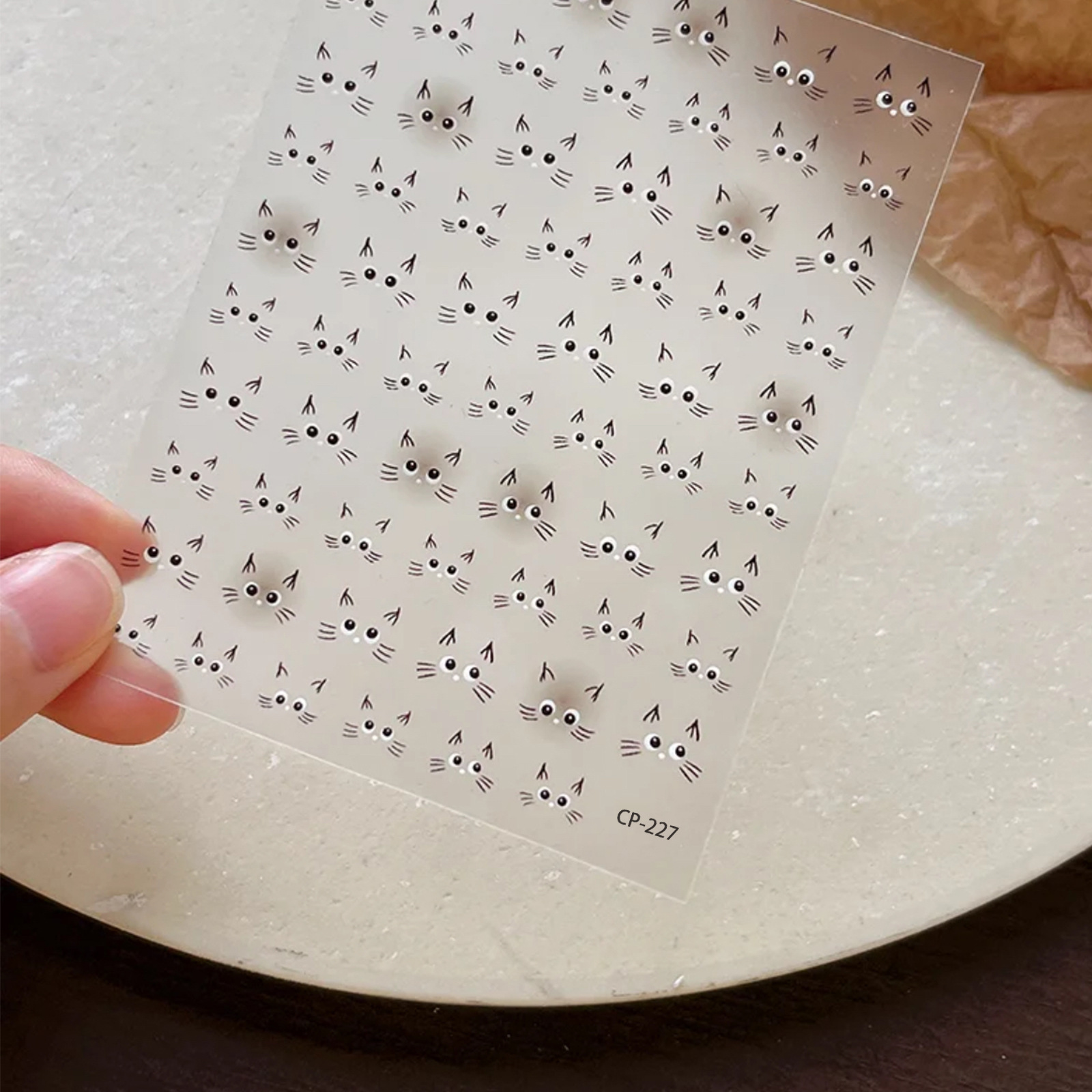 투명한 울트라 얇은 마크 제인 펜 고양이 얼굴 네일 아트 스티커 낙서 수염 고양이 스티커 공장 도매스토어 가기