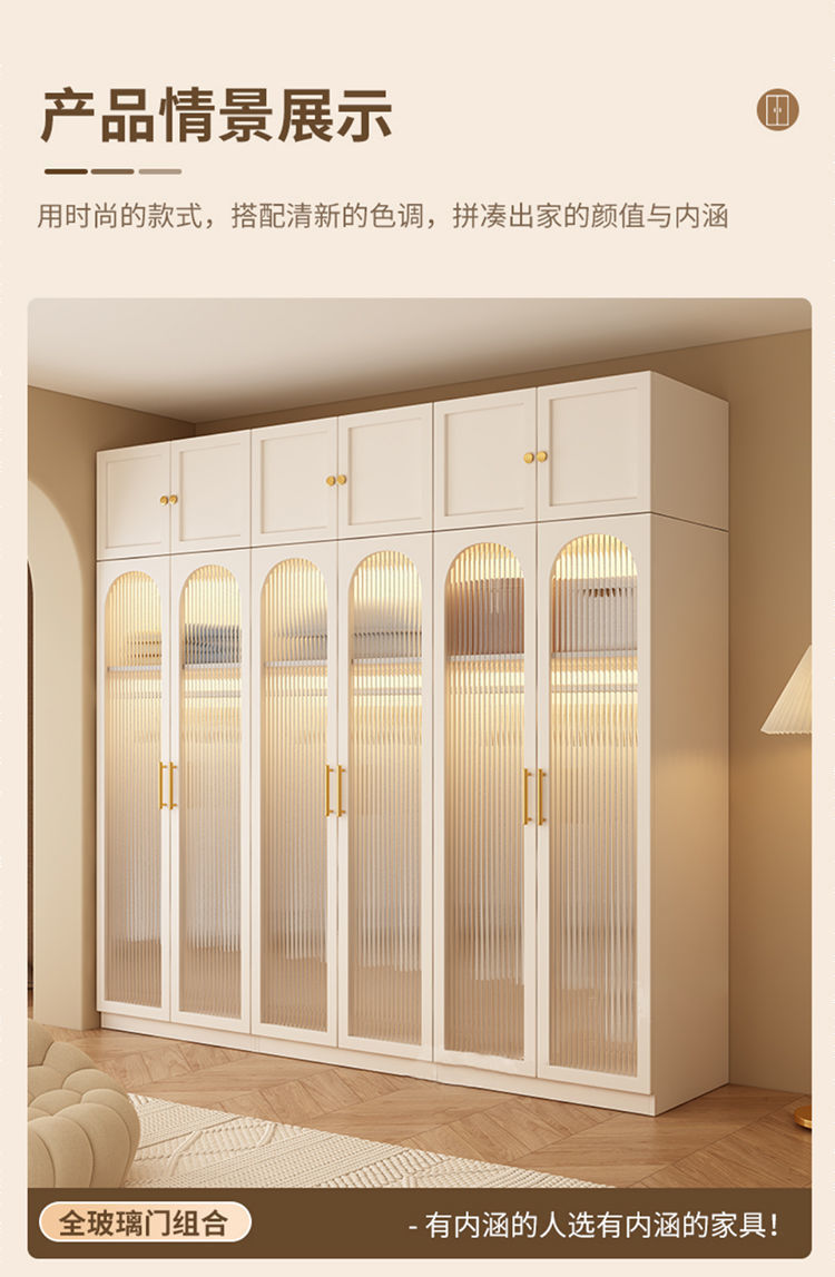 Yla 솔리드 우드 옷장 가정용 1 개 내각 탑 반대 유리 도어 조합 대형 옷장 서랍 세트스토어 가기
