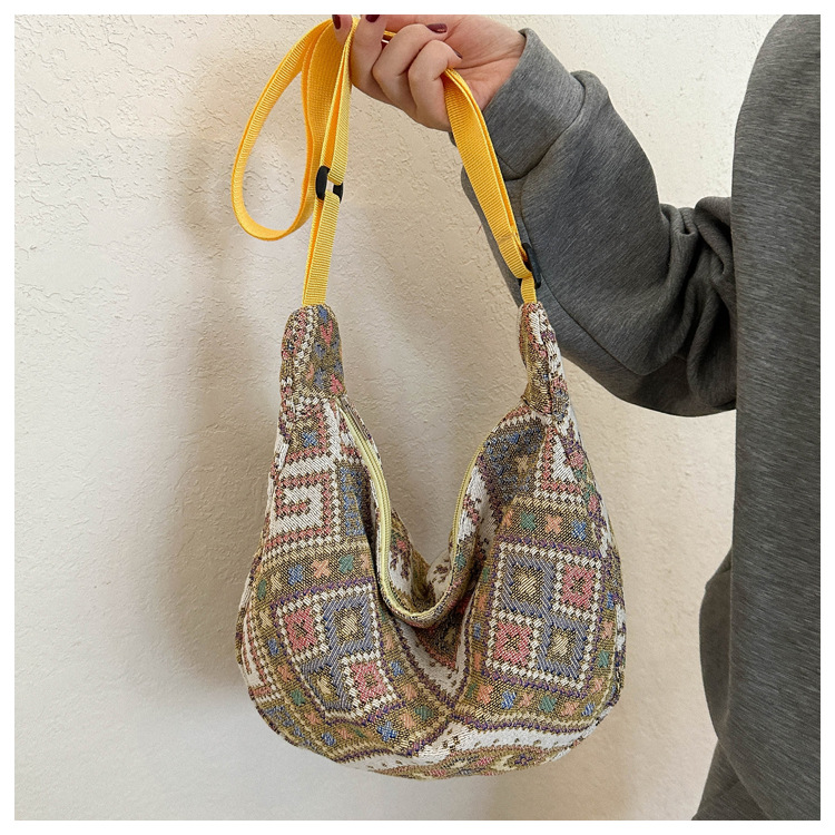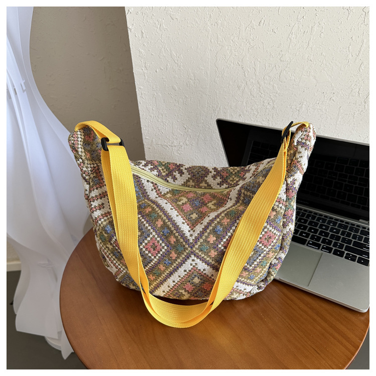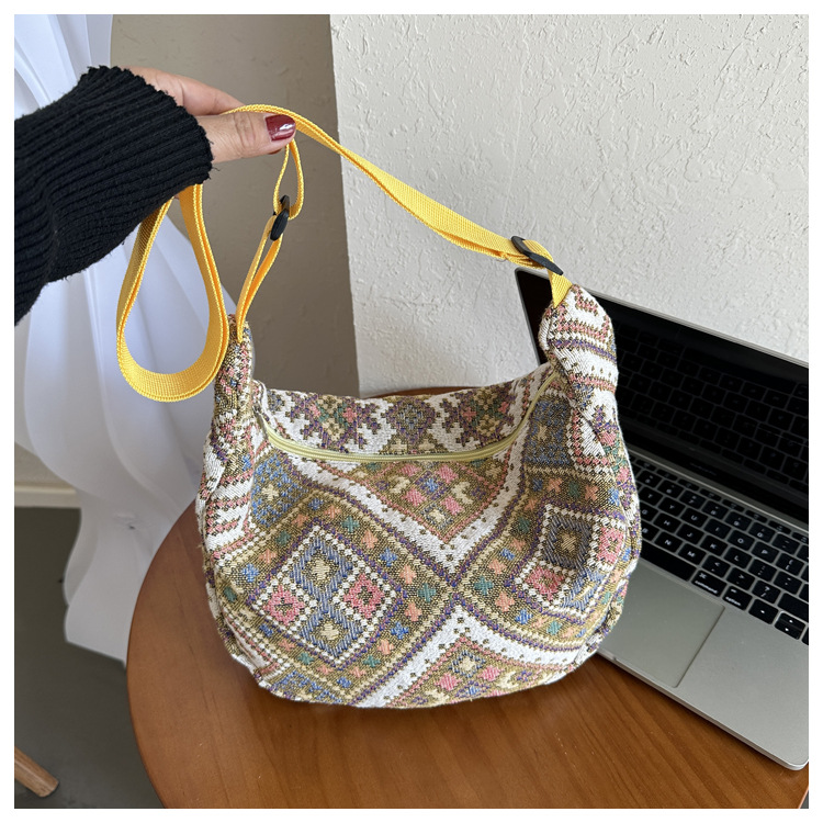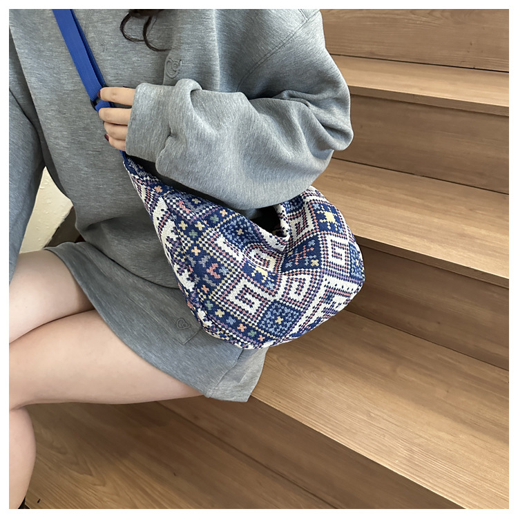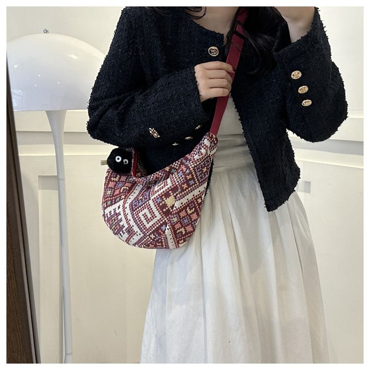 전국 패션 민족 스타일 만두 백 여성 가방 2025 새로운 어깨 크로스 바디 백 다채로운 펜던트 핸드백 줄무늬 가방스토어 가기