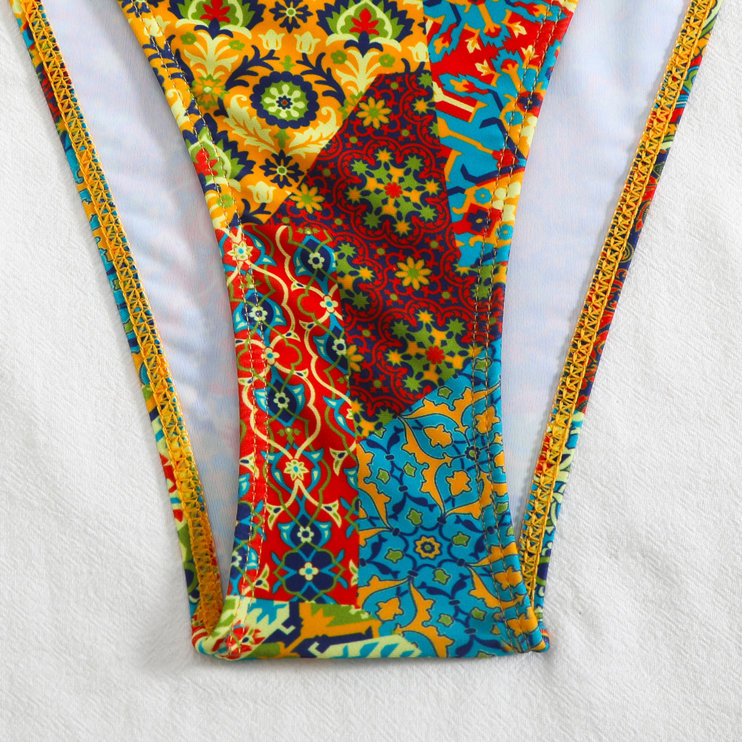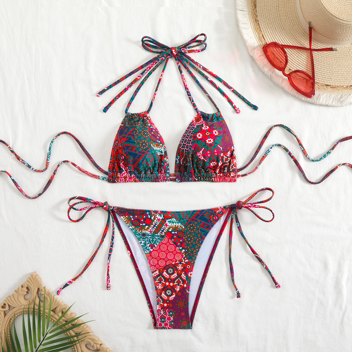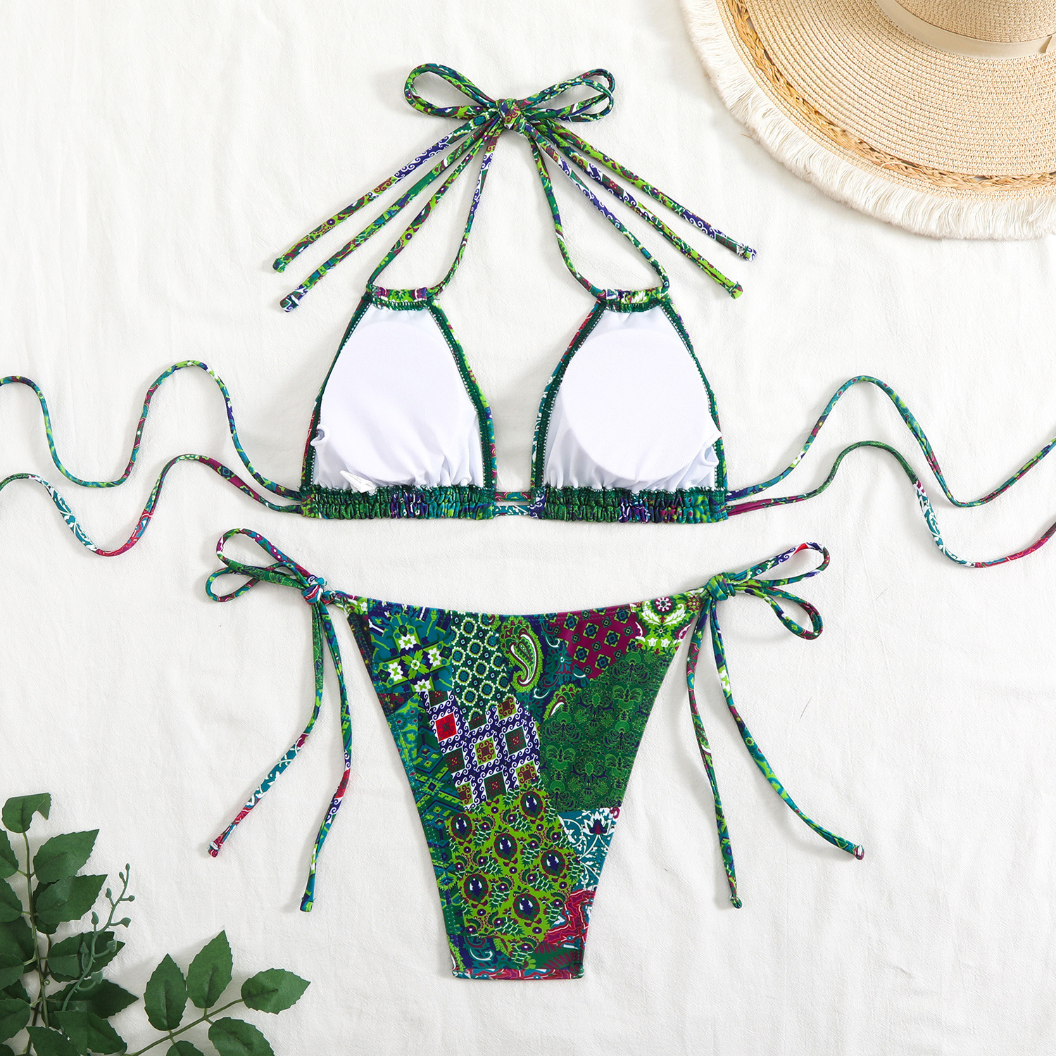 2025 새로운 국경 유럽 및 미국 분할 수영복 여성 인쇄 섹시한 더블 스트랩 백리스 비키니 수영복 비키니