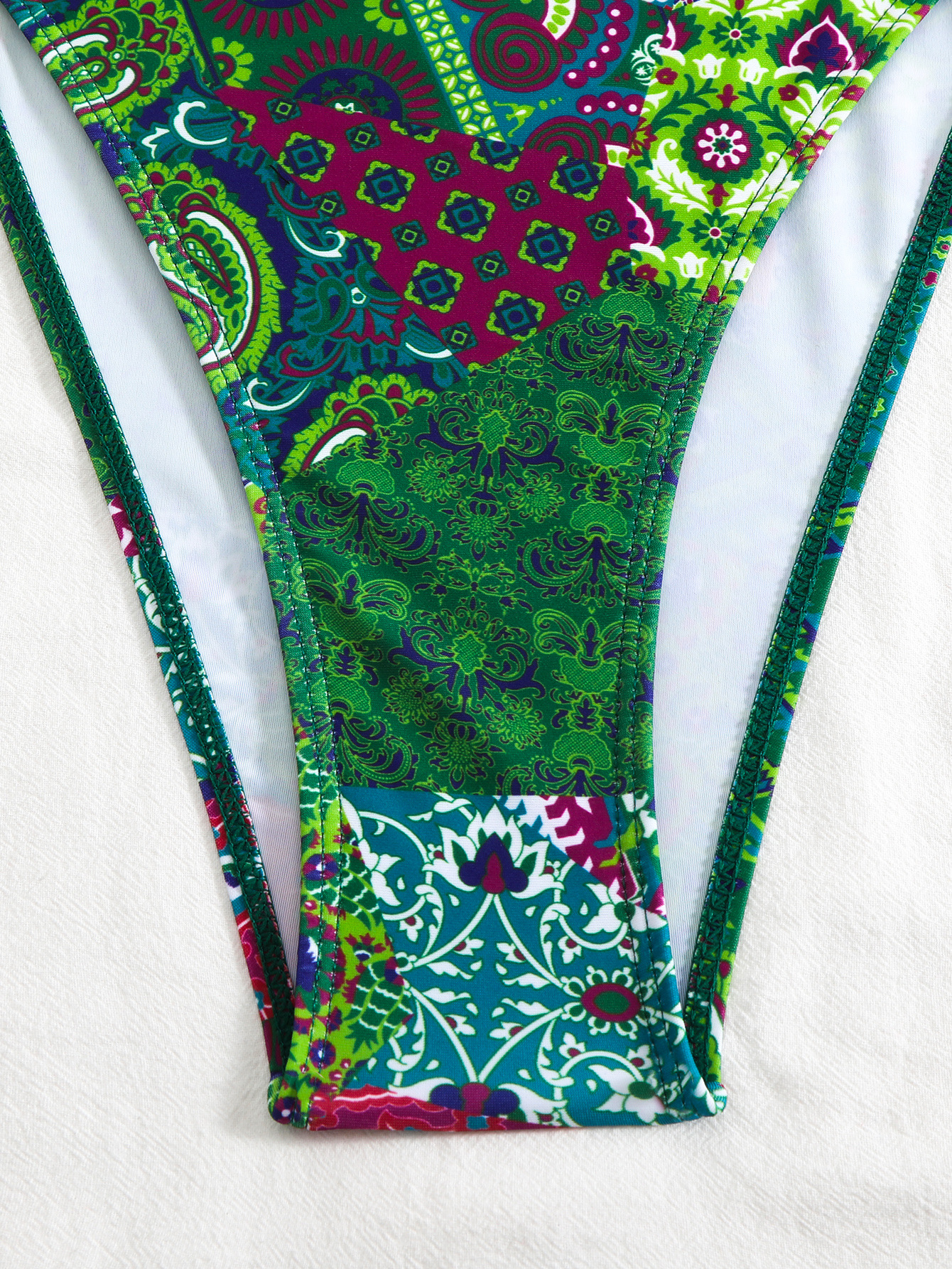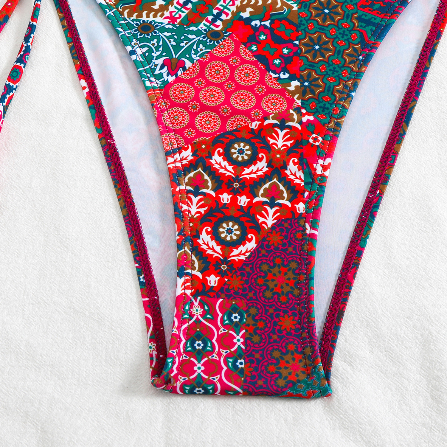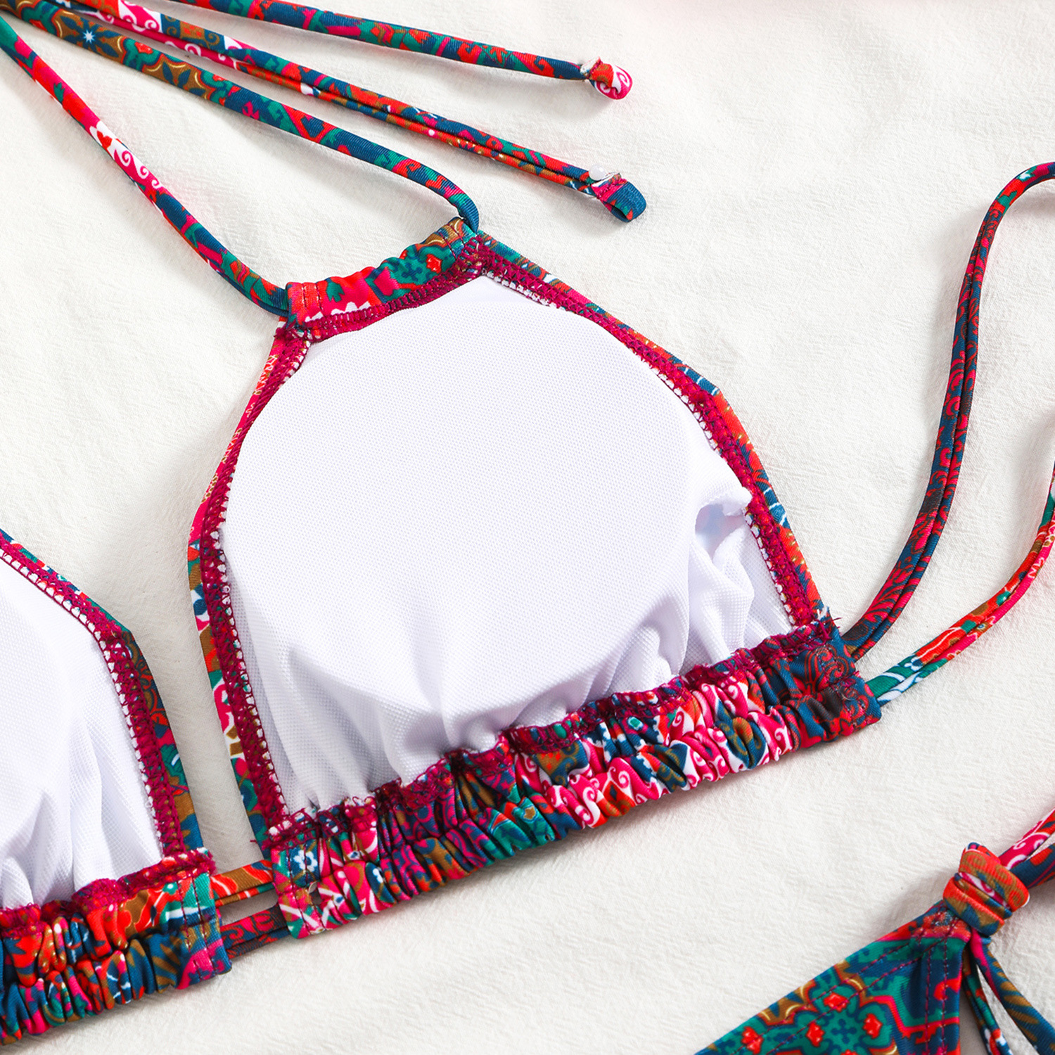 2025 새로운 국경 유럽 및 미국 분할 수영복 여성 인쇄 섹시한 더블 스트랩 백리스 비키니 수영복 비키니