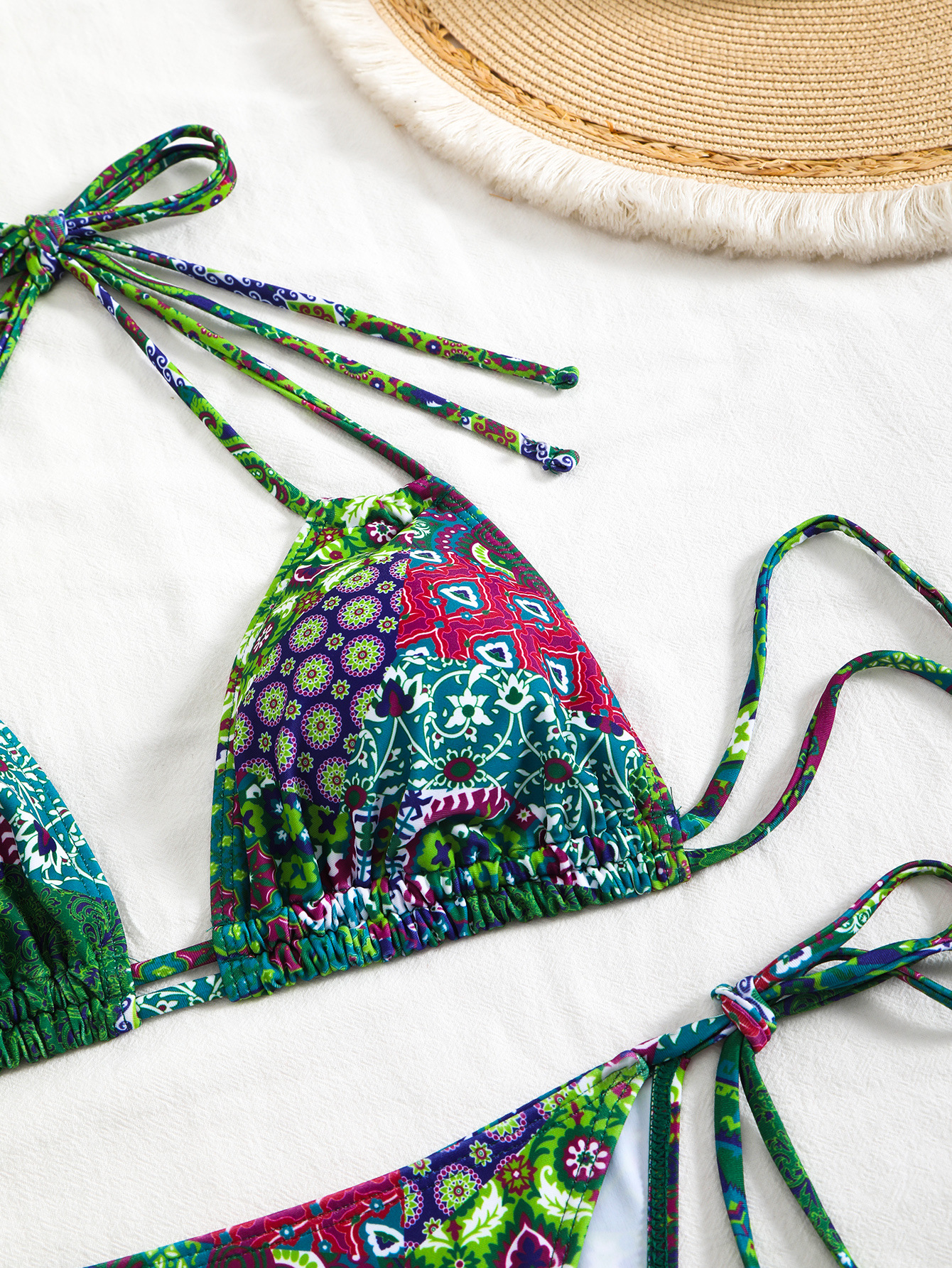 2025 새로운 국경 유럽 및 미국 분할 수영복 여성 인쇄 섹시한 더블 스트랩 백리스 비키니 수영복 비키니스토어 가기