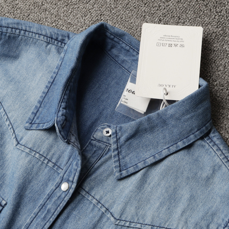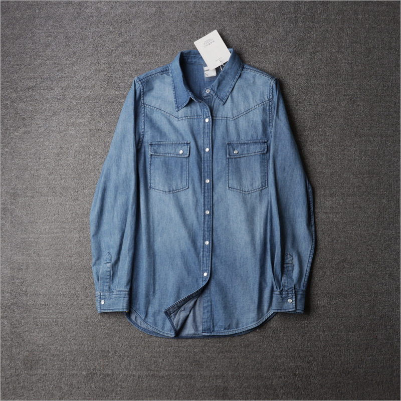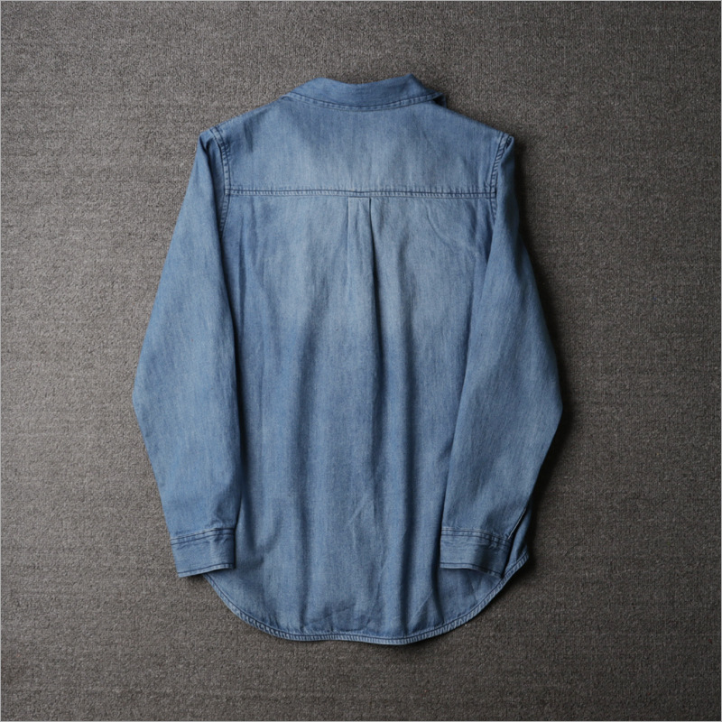 여름 신작 Tan Songyun의 캐주얼 루즈 싱글 브레스트 긴팔 라펠 데님 셔츠