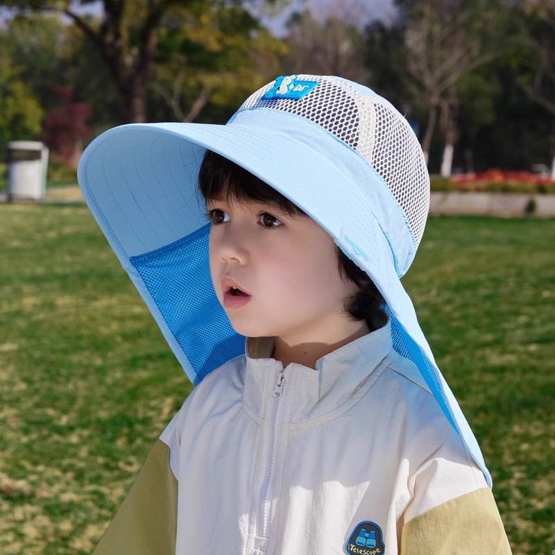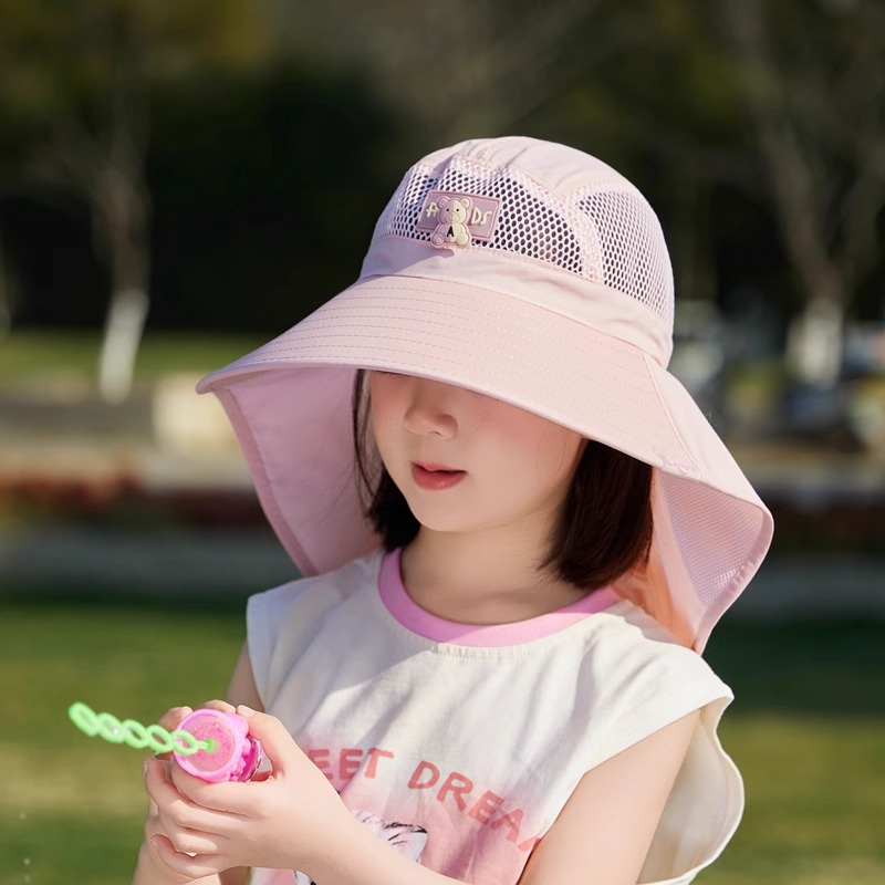 어린이 태양 보호 모자 여름 큰 챙 해변 목도리 모자 소년과 소녀를위한 아기 자외선 방지 통기성 메쉬 태양 모자