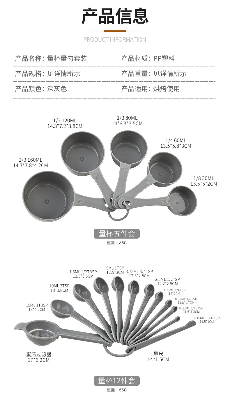 플라스틱 계량컵 17종 세트 베이킹 계량컵 계량스푼 세트 계량컵 분유스푼 계란백 분리기가 포함된 조미료스푼