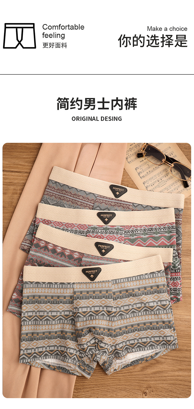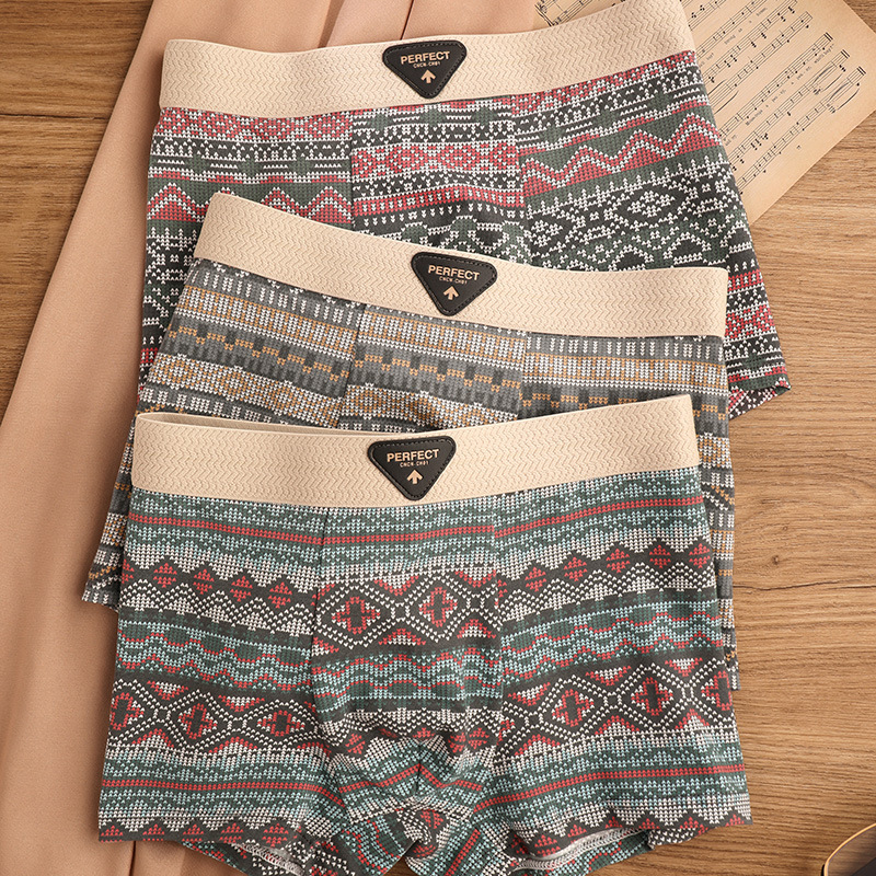 새로운 남성 스포츠 유행 속옷 통기성 항균 복서 소년 중간 허리 자카드 4 코너 반바지 머리 속옷스토어 가기