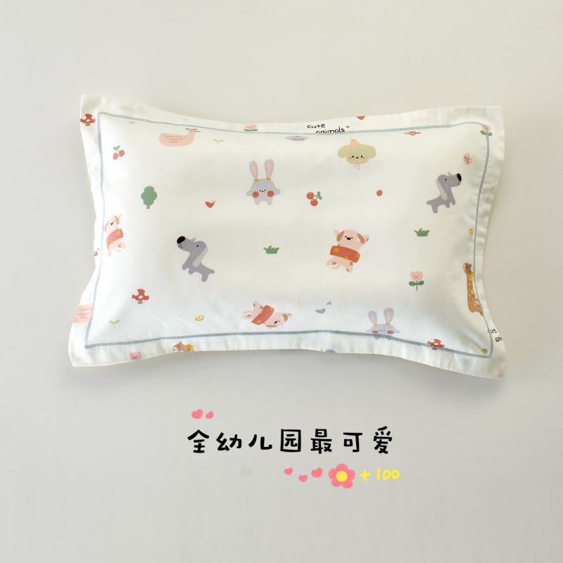 60 긴 스테이플 면 어린이 프레스 가장자리 베개 커버 유아 클래스 A 무형광 직물 유치원 아기 만화 베개 커버스토어 가기