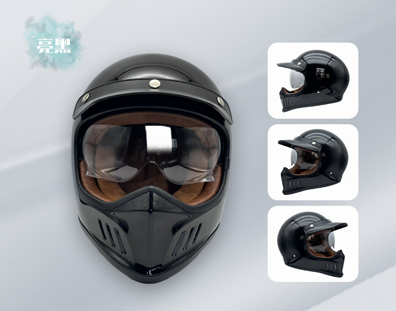 VOSS 레트로 풀 페이스 헬멧 할리 오토바이 남성용 및 여성용 올 시즌 헬멧(내부 미러 포함)스토어 가기