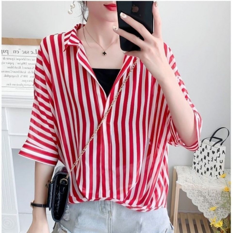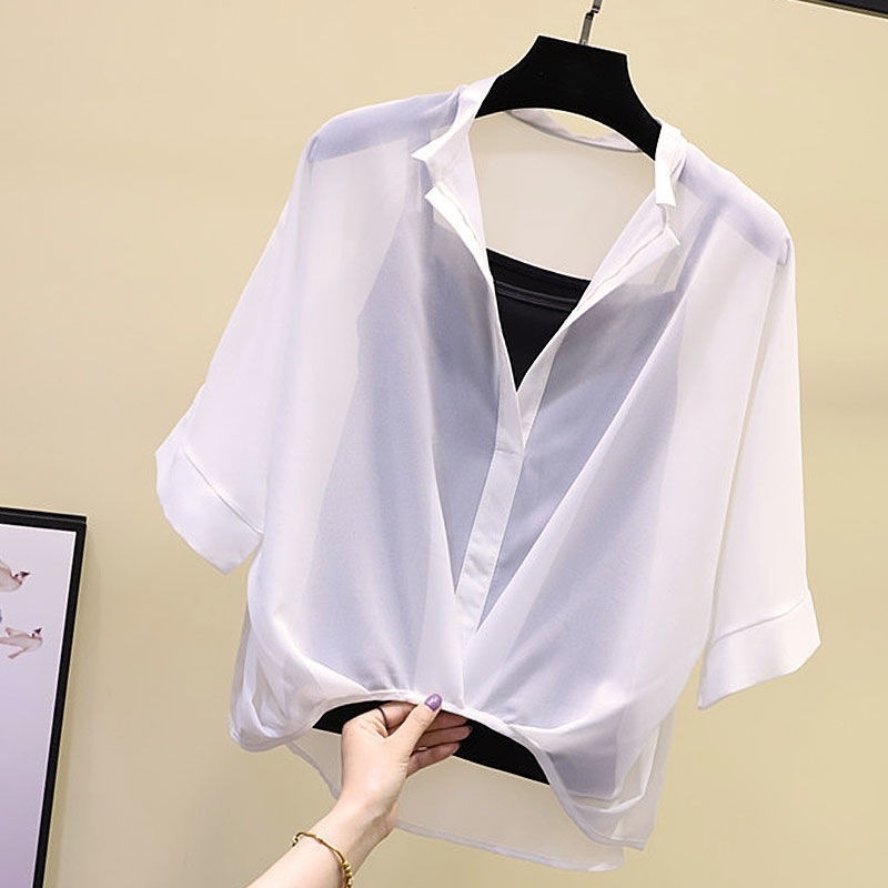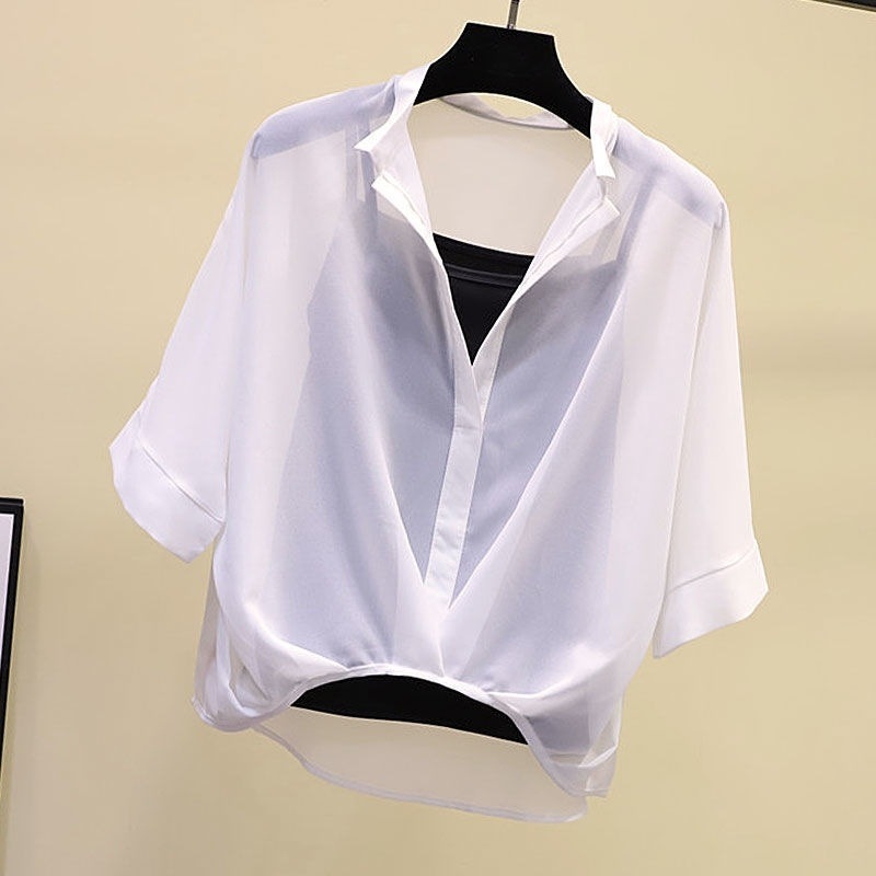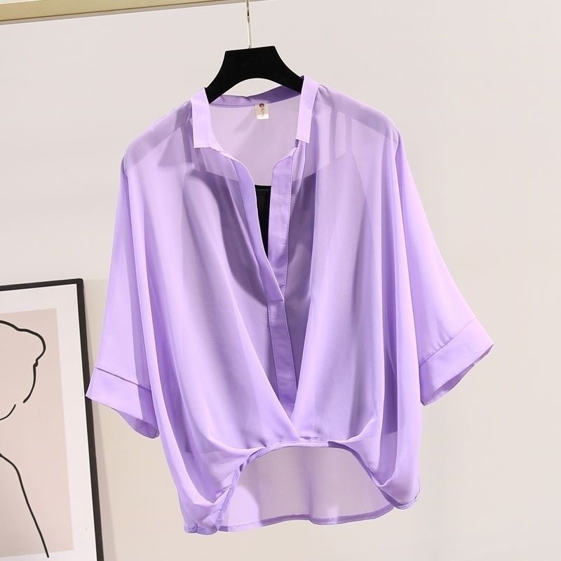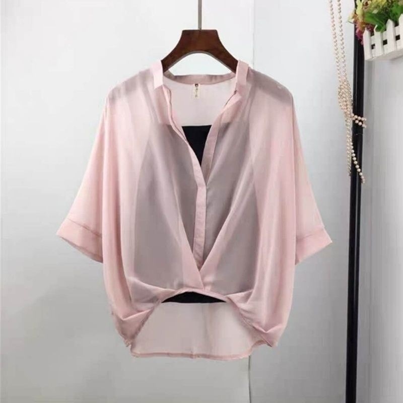 여름 쉬폰 탑 여성 패션 신상 탑 배트 슬리브 루즈 반팔 셔츠 배트 셔츠 4050 세 아우터 셔츠스토어 가기