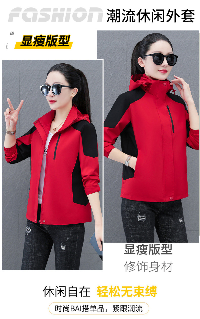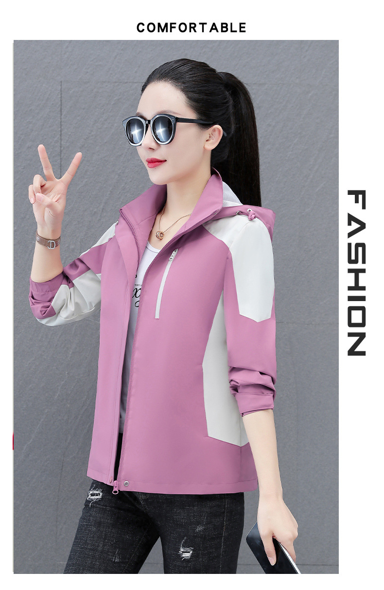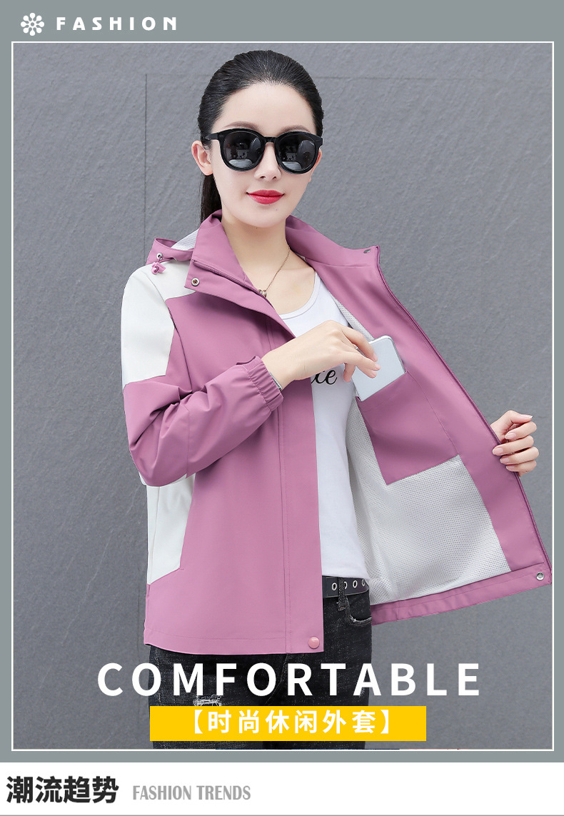 여성을위한 캐주얼 대비 색상 분리형 캡 재킷 재킷 봄, 가을 새로운 야외 등산 재킷 여성을위한 캐주얼 재킷스토어 가기