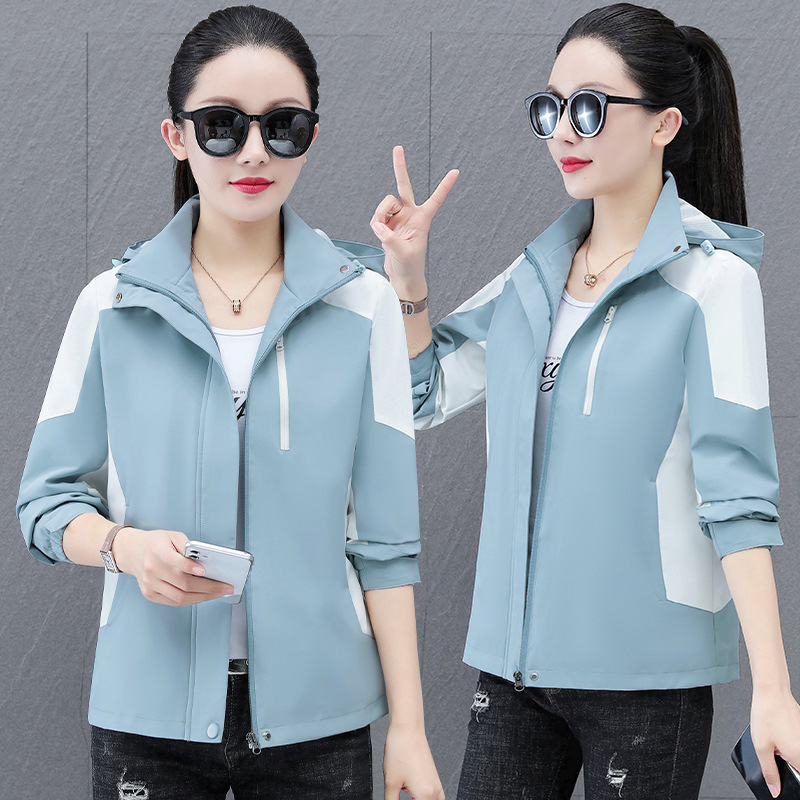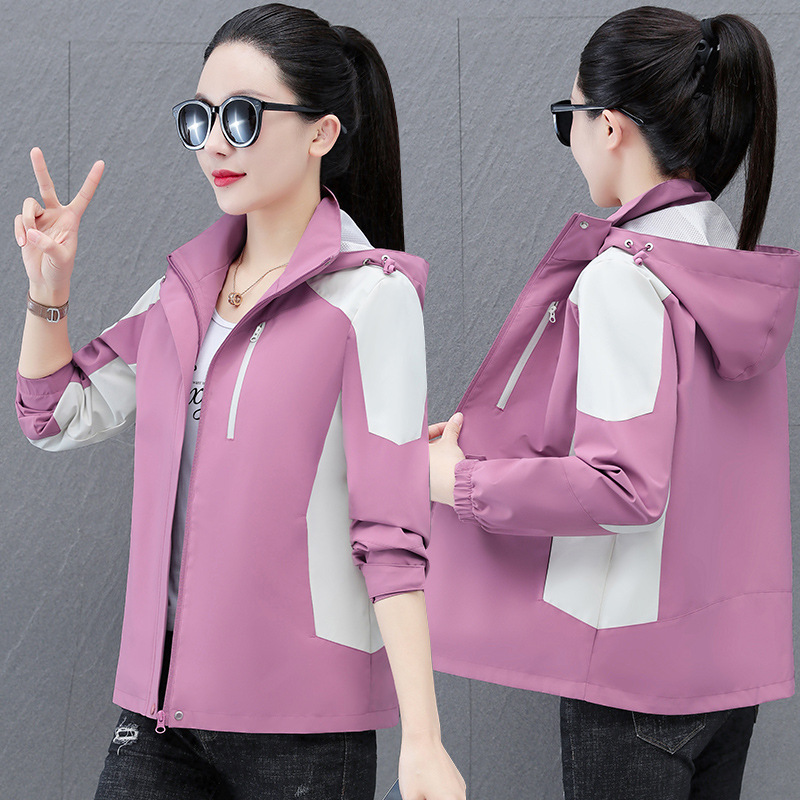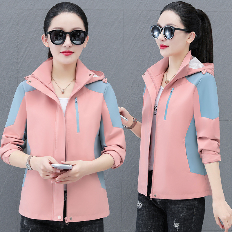 여성을위한 캐주얼 대비 색상 분리형 캡 재킷 재킷 봄, 가을 새로운 야외 등산 재킷 여성을위한 캐주얼 재킷
