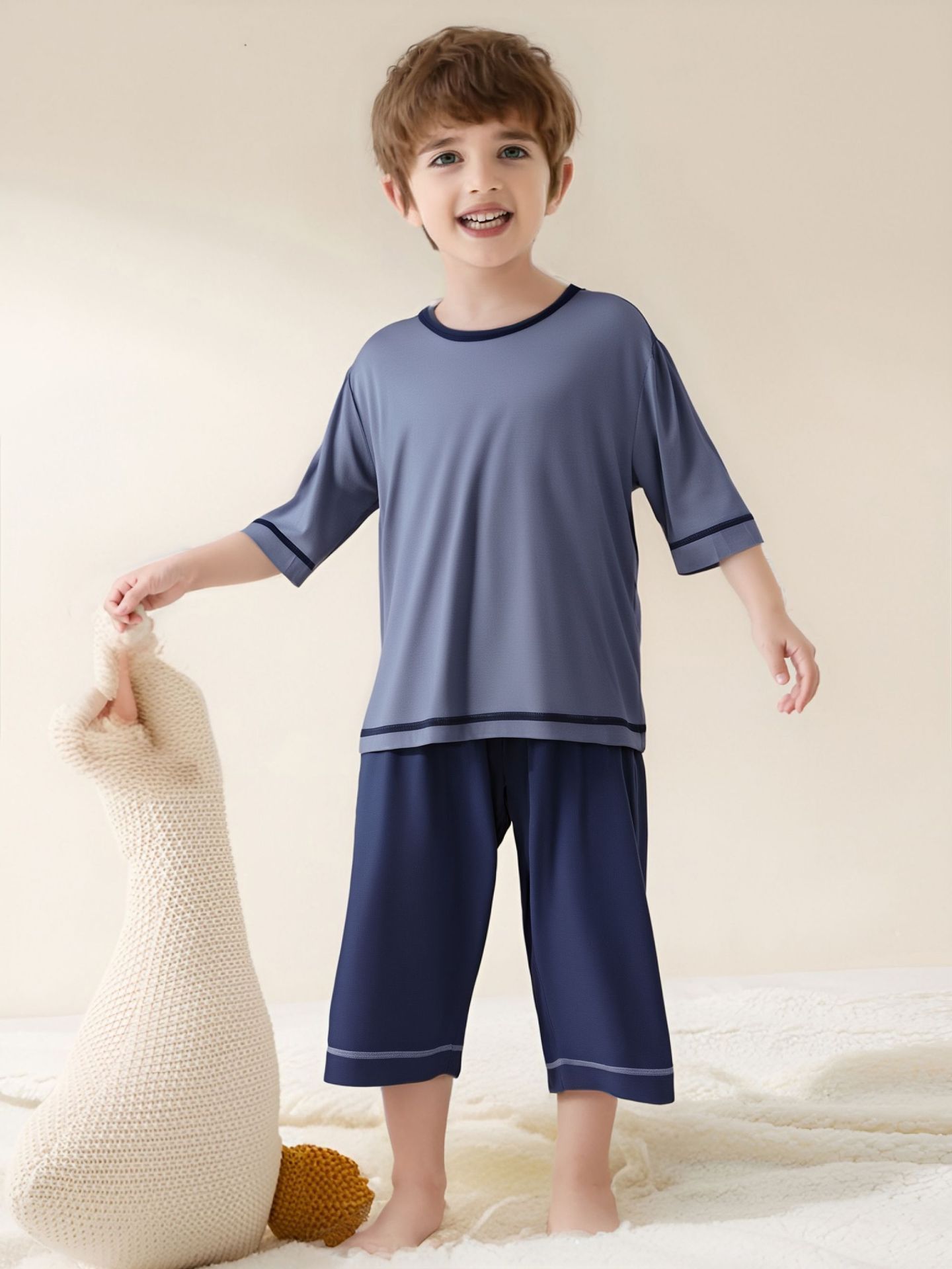 어린이 잠옷 세트 여름 클래스 유코스 7 소매 에어컨 소년 소녀 홈 의류 세트 모달스토어 가기
