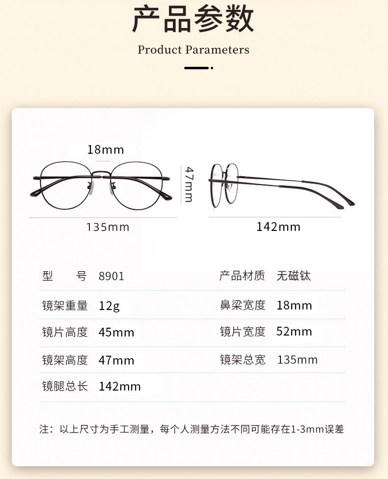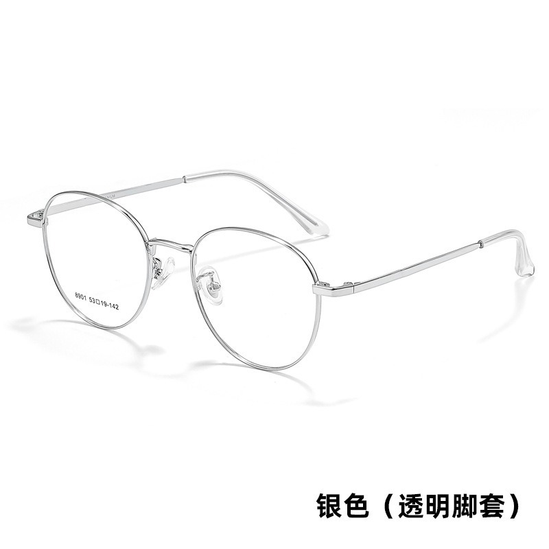 새로운 초경량 복고풍 원형 프레임 렙틴 안경 평면 렌즈 8901 고값 티타늄 프레임 근시 프레임 여성