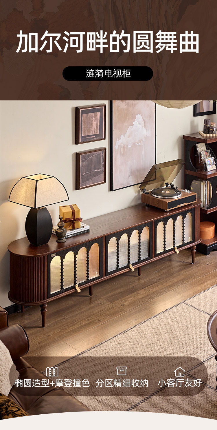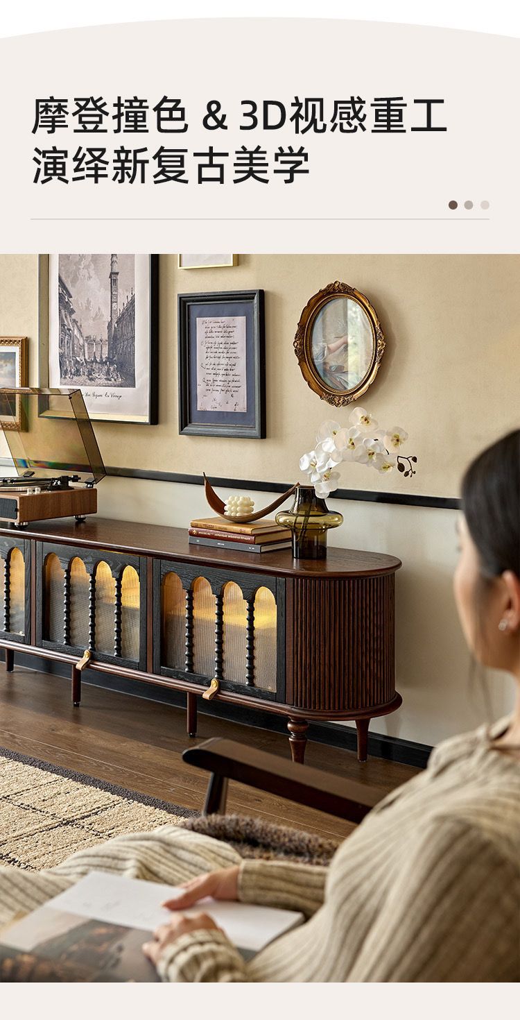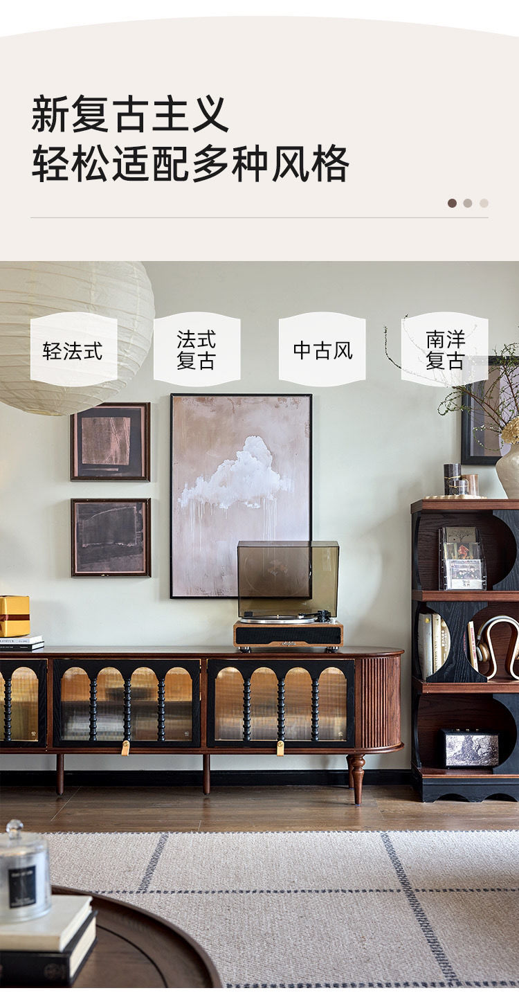 프렌치 레트로 솔리드 우드 TV 캐비닛 블랙 작은 아파트 하이 엔드 뉴 로커 커피 테이블 거실 조합 아메리칸 스타일스토어 가기