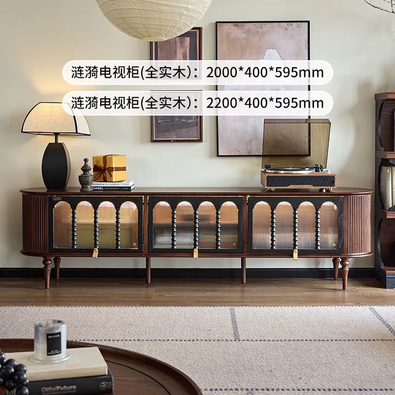 프렌치 레트로 솔리드 우드 TV 캐비닛 블랙 작은 아파트 하이 엔드 뉴 로커 커피 테이블 거실 조합 아메리칸 스타일