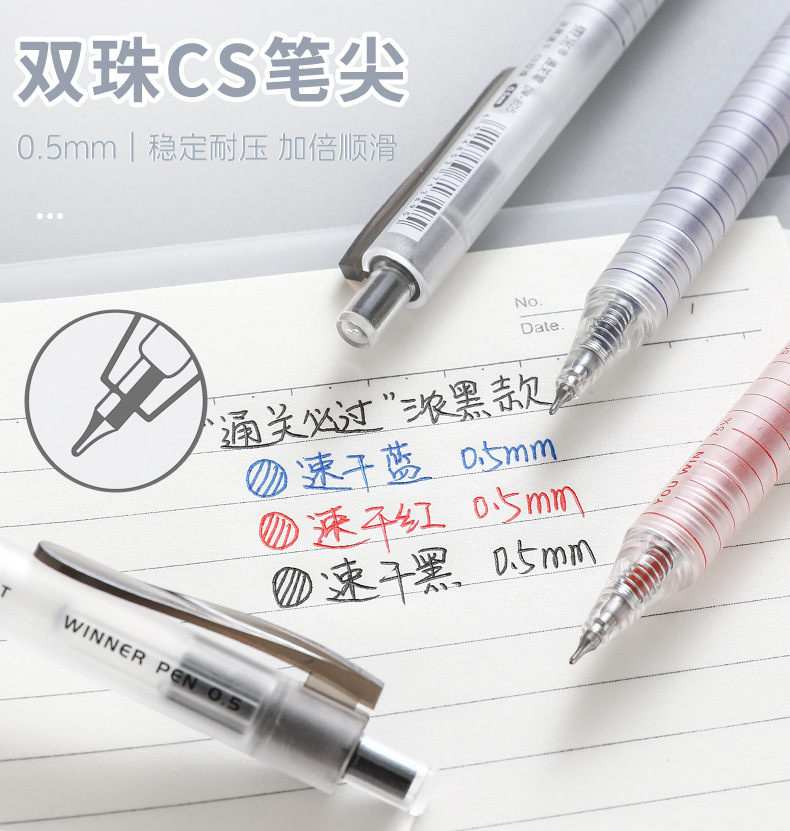 동미 805 세관 통관은 젤 펜 간단한 0.5mm 블랙/레드/블루 CS 더블 비드 빠른 건조 브러쉬 펜을 눌러야합니다