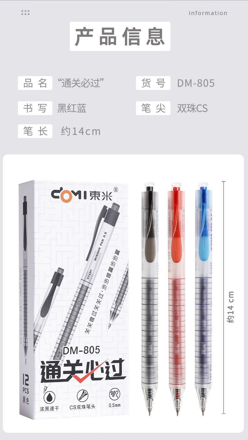 동미 805 세관 통관은 젤 펜 간단한 0.5mm 블랙/레드/블루 CS 더블 비드 빠른 건조 브러쉬 펜을 눌러야합니다스토어 가기