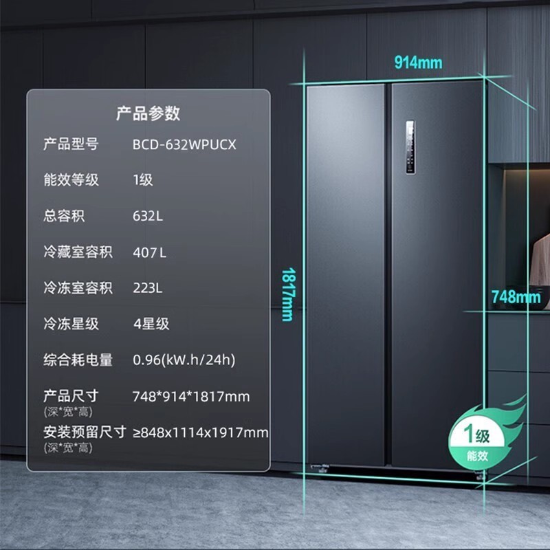 Meiling 냉장고 632/620 리터 가정용 양문형 냉장고 대용량 가변 주파수 공냉식 냉장고스토어 가기