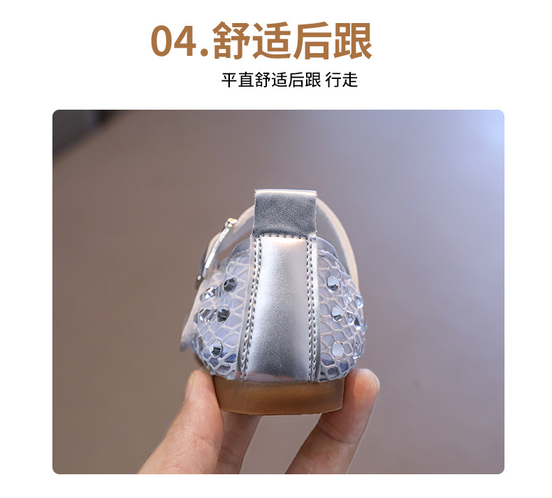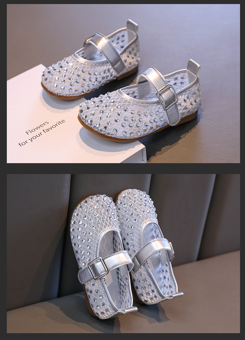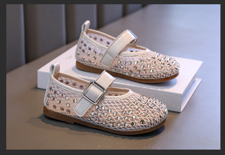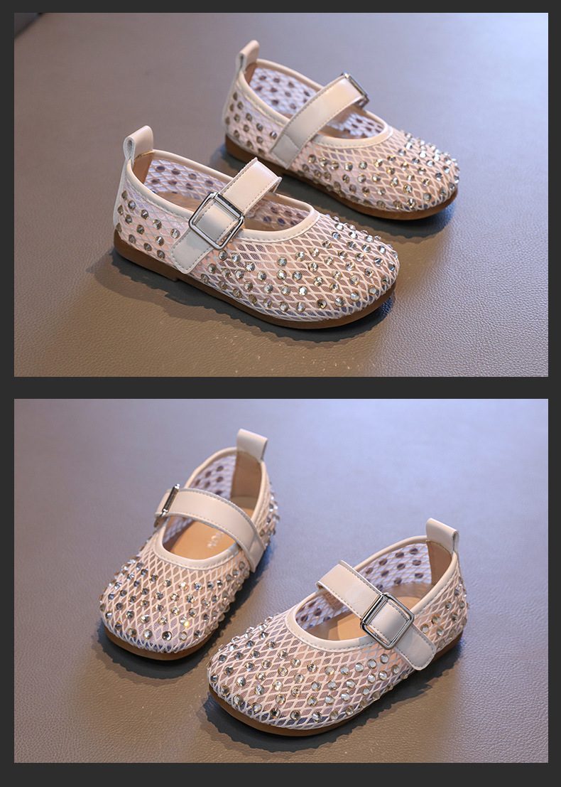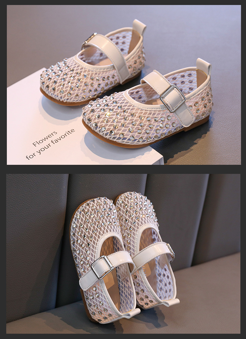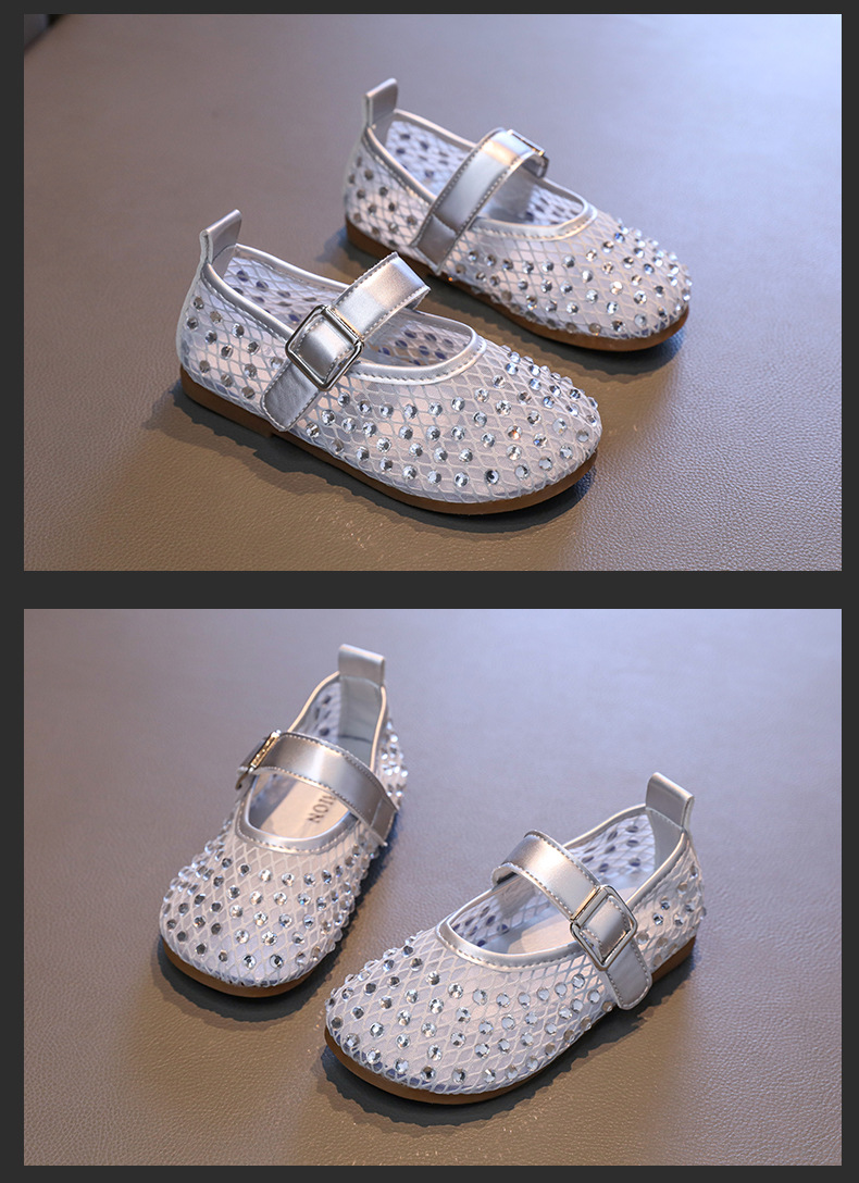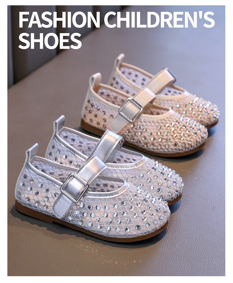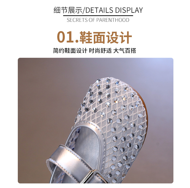 소녀 샌들 어린이 공주 작은 가죽 신발 2025 봄과 여름 새로운 크리스탈 싱글 레이어 신발 작은 샤넬 스타일 얕은 입 완두콩 신발스토어 가기