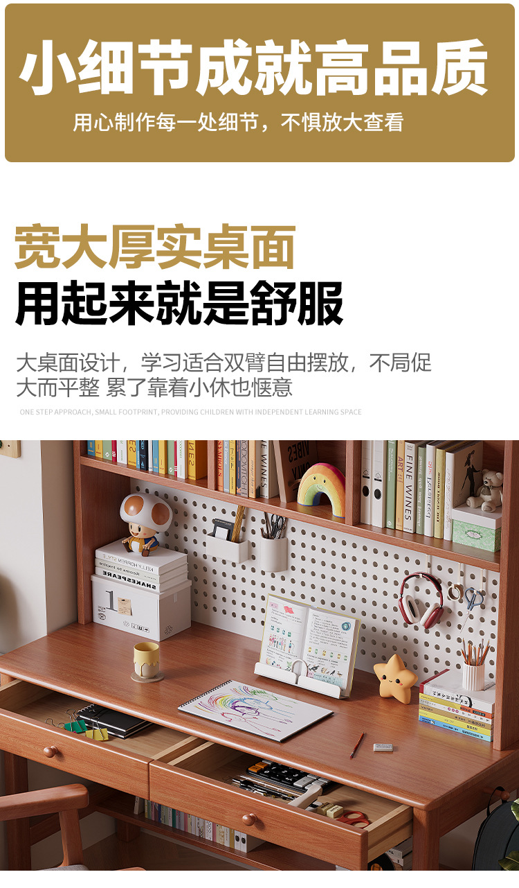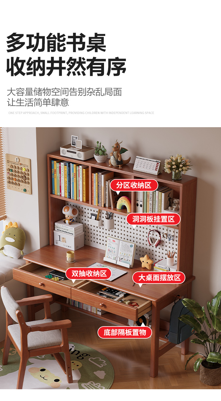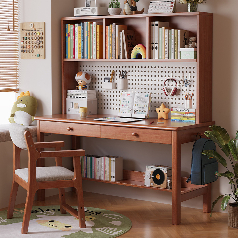 가정용 솔리드 우드 통합 테이블, 책상 및 책장 완벽한 조합 솔리드 우드 데스크 및 책장 통합 가정용 숙제 컴퓨터