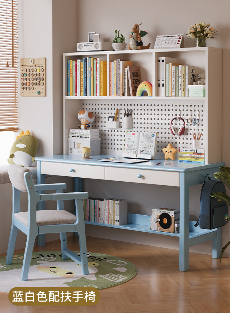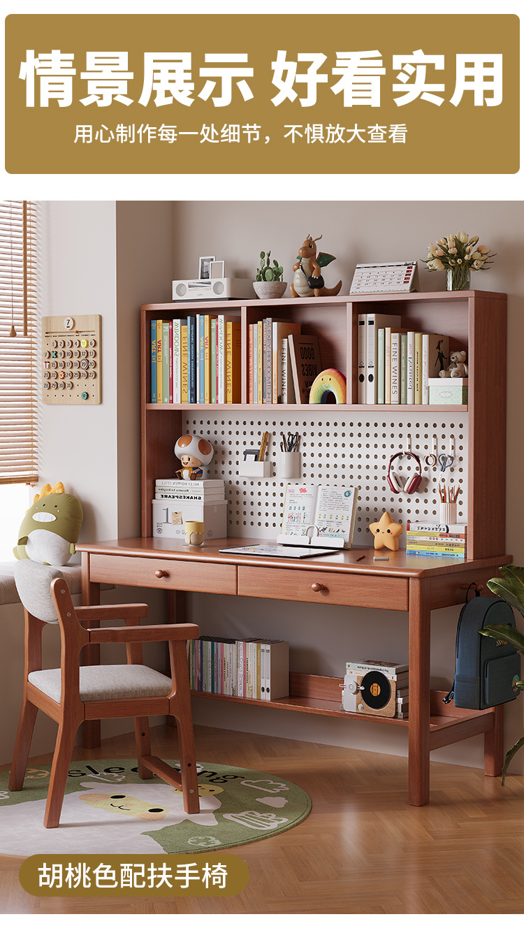 가정용 솔리드 우드 통합 테이블, 책상 및 책장 완벽한 조합 솔리드 우드 데스크 및 책장 통합 가정용 숙제 컴퓨터스토어 가기