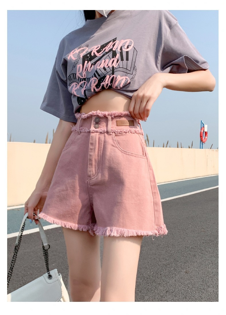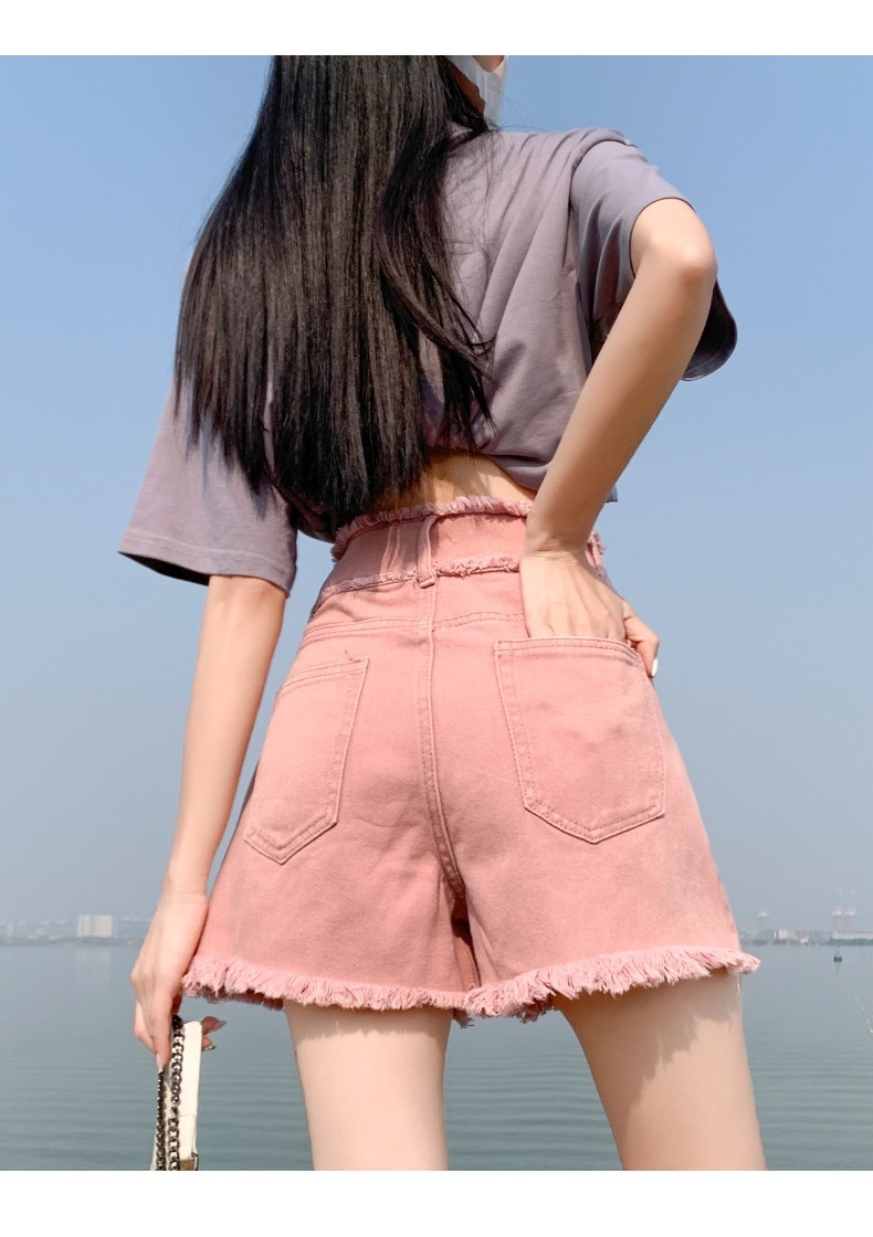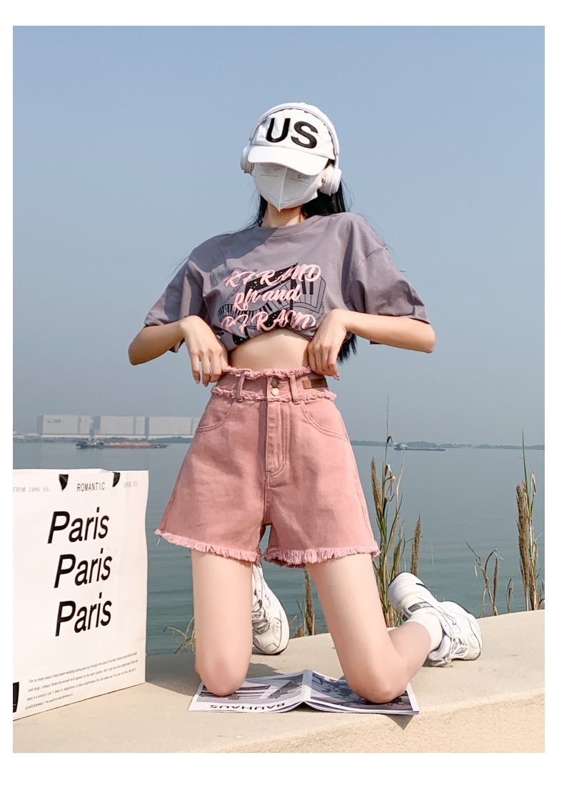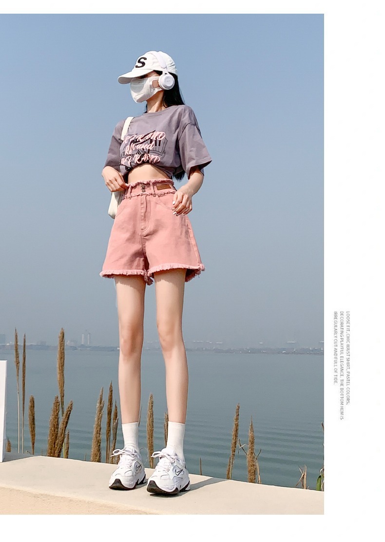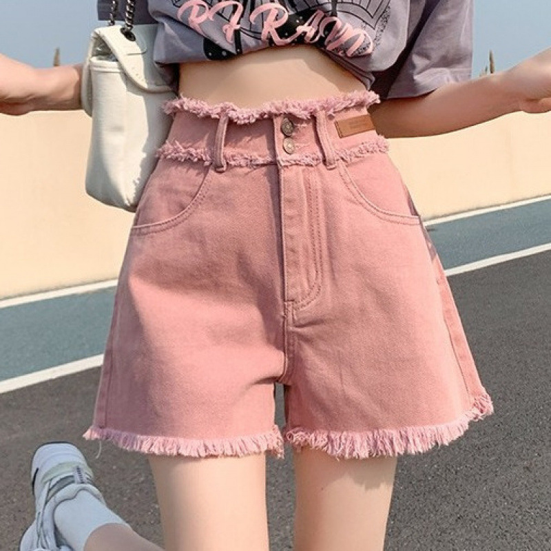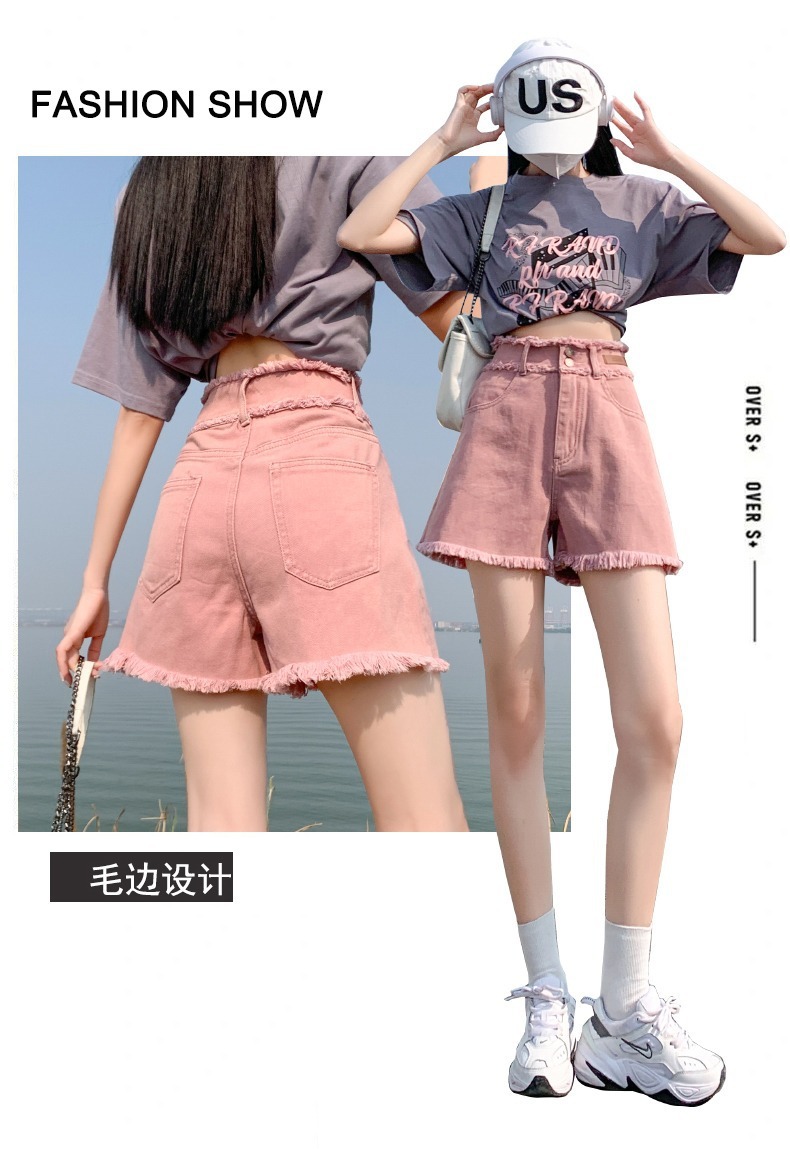 더티핑크 데님 반바지 여자 여름 2024 새로운 높은 허리 슬리밍 느슨한 램 엣지 핫 팬츠스토어 가기