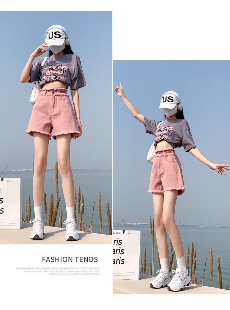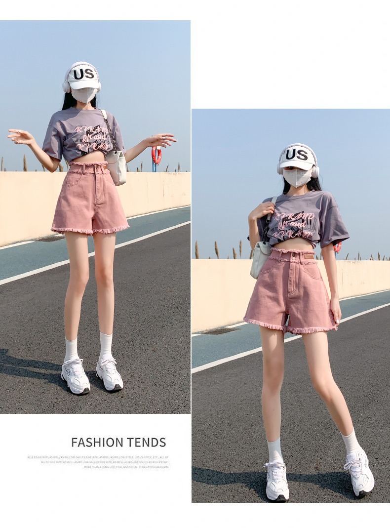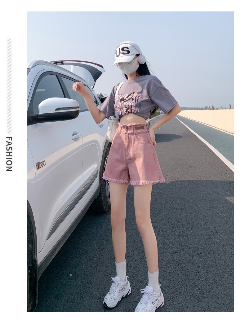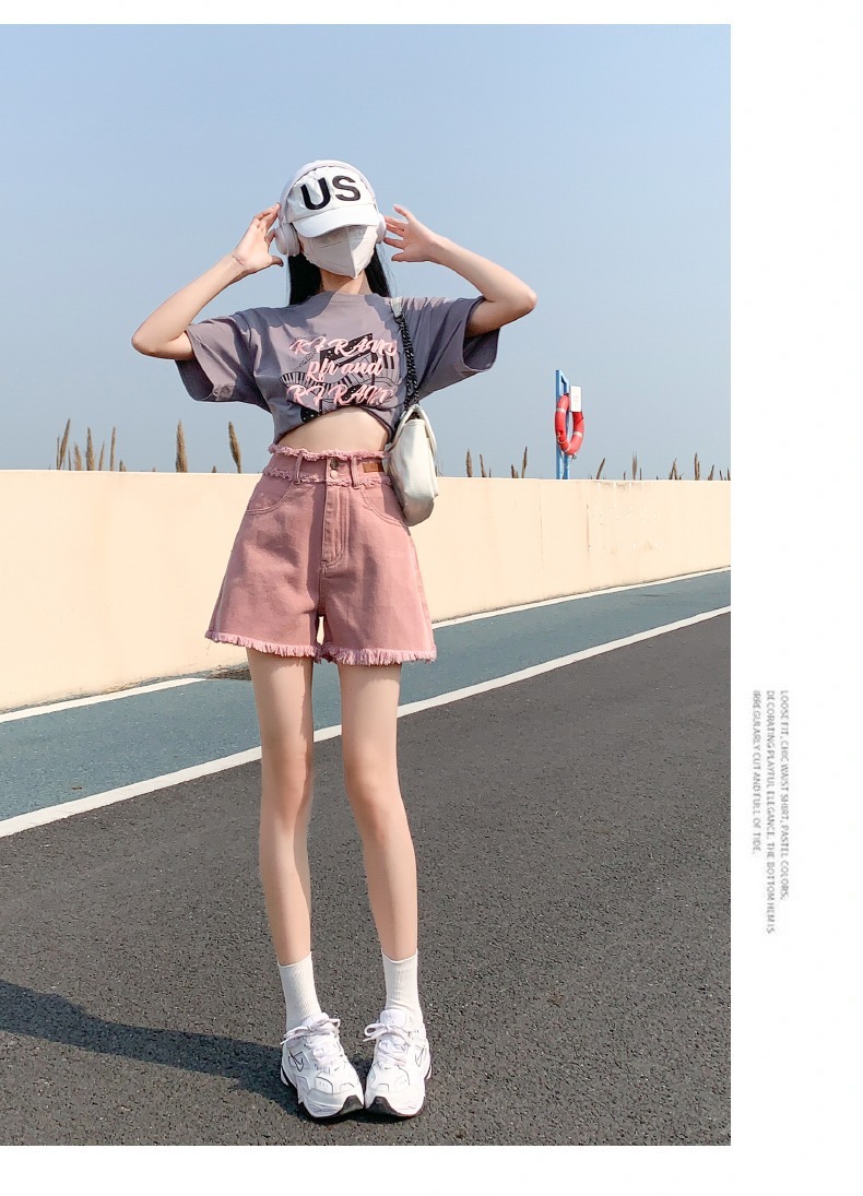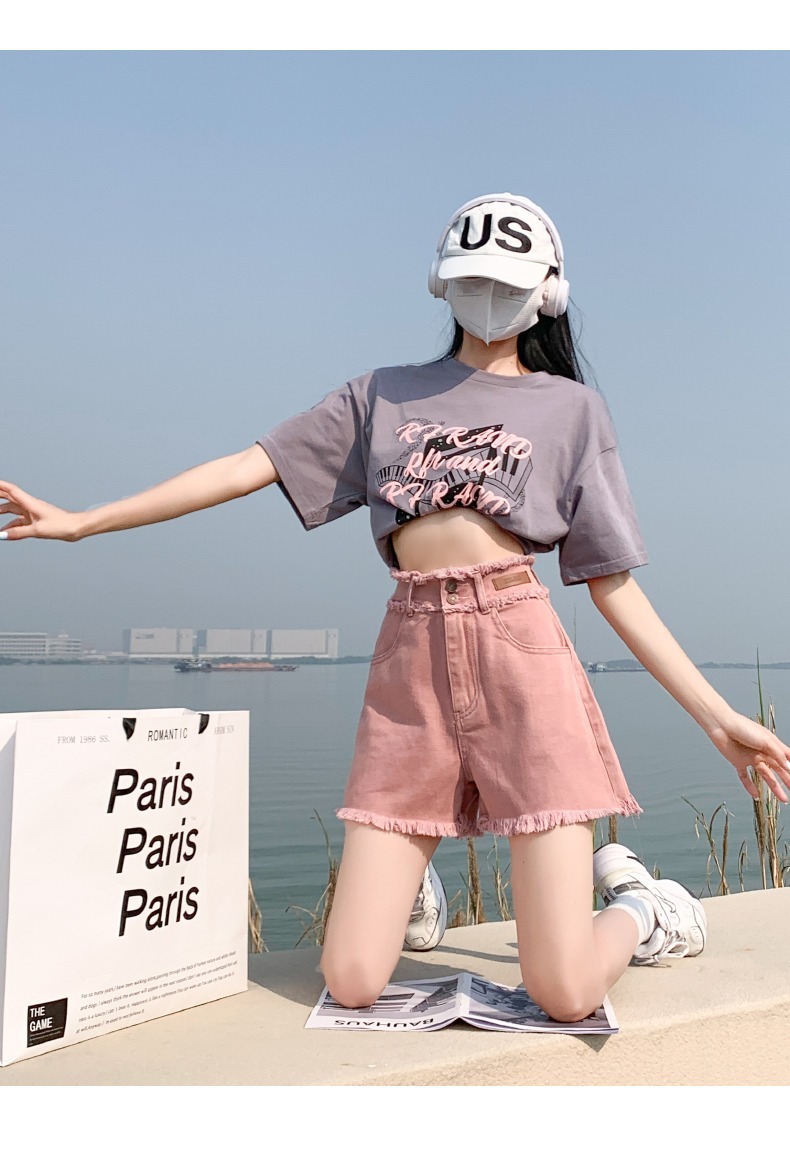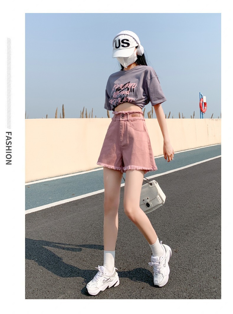더티핑크 데님 반바지 여자 여름 2024 새로운 높은 허리 슬리밍 느슨한 램 엣지 핫 팬츠스토어 가기
