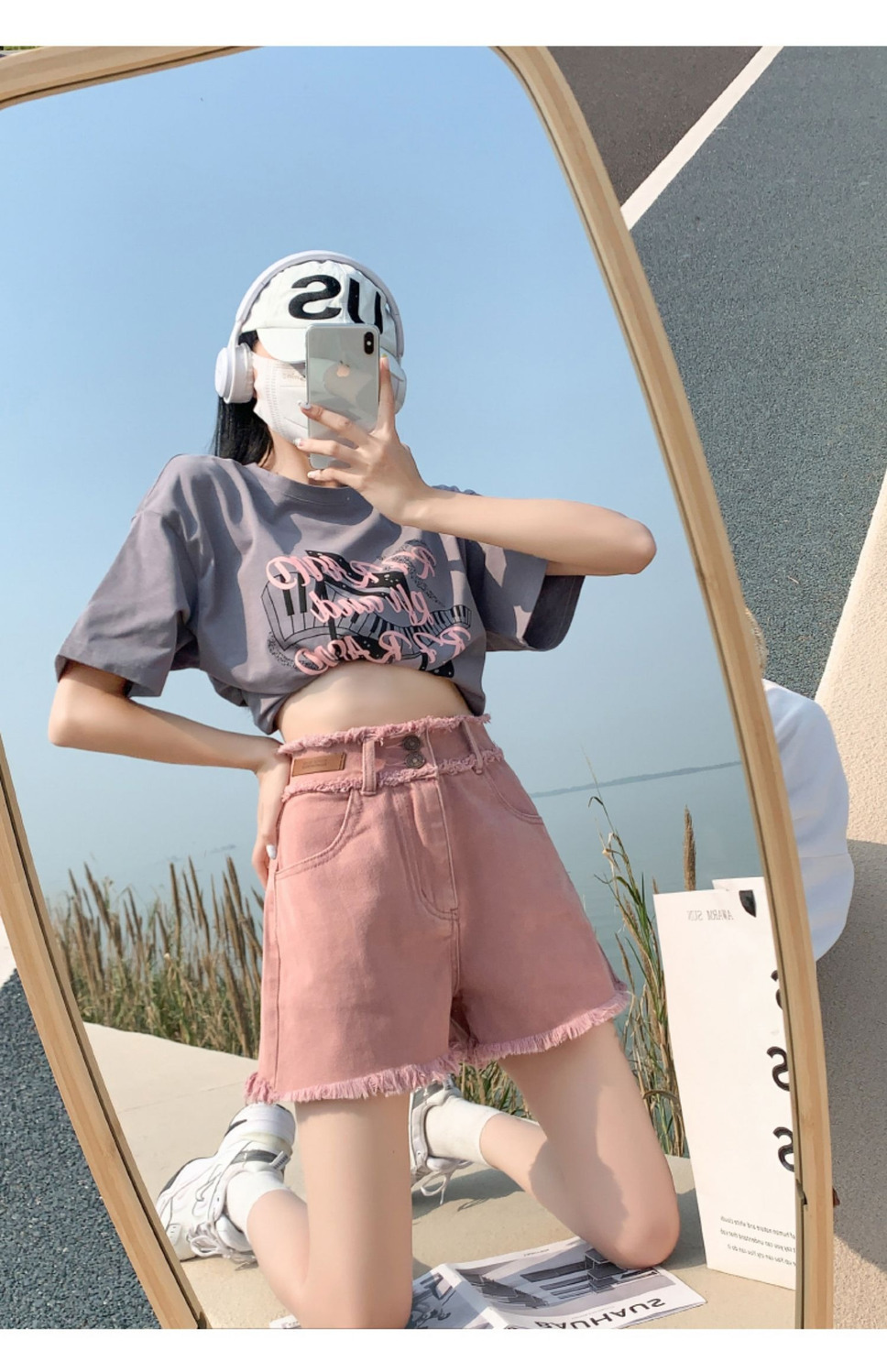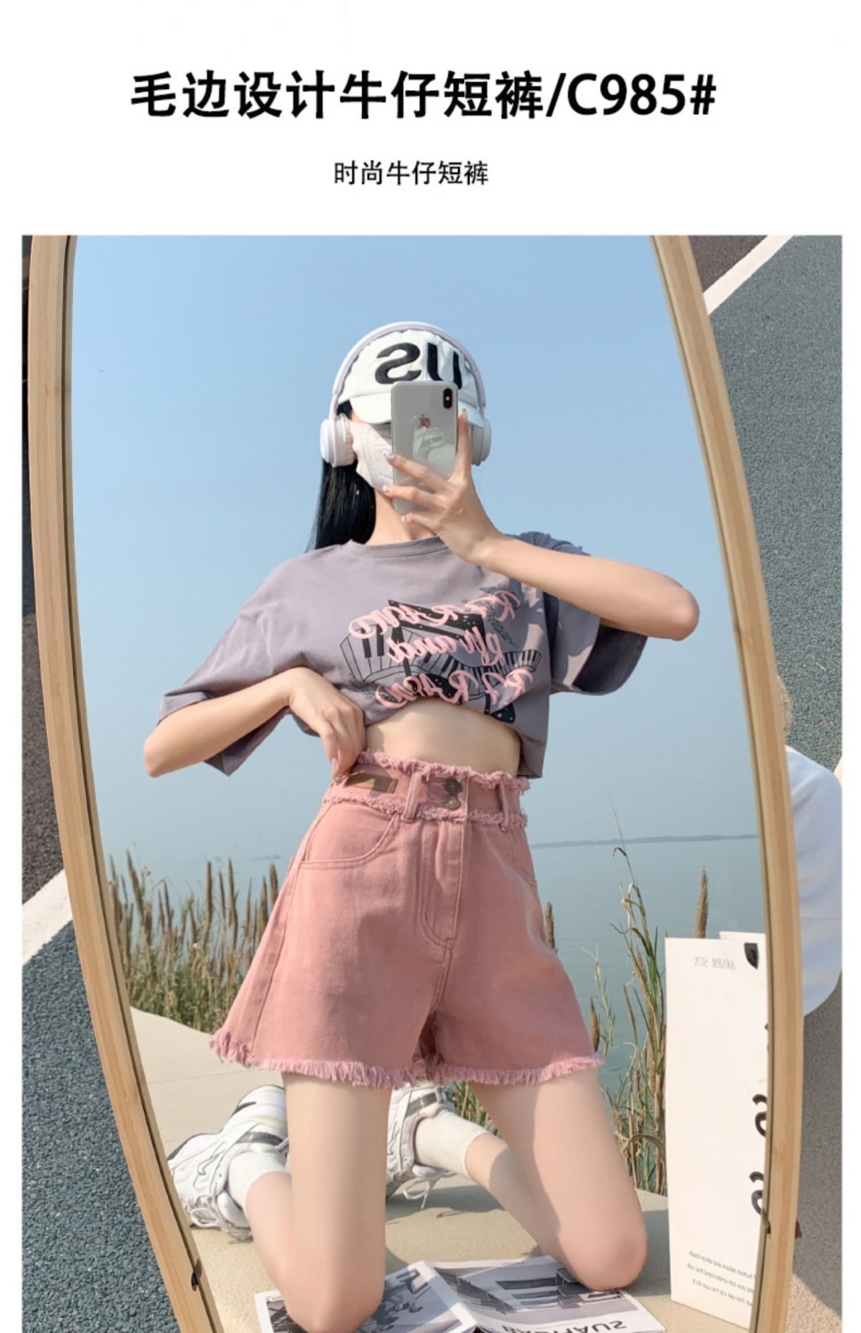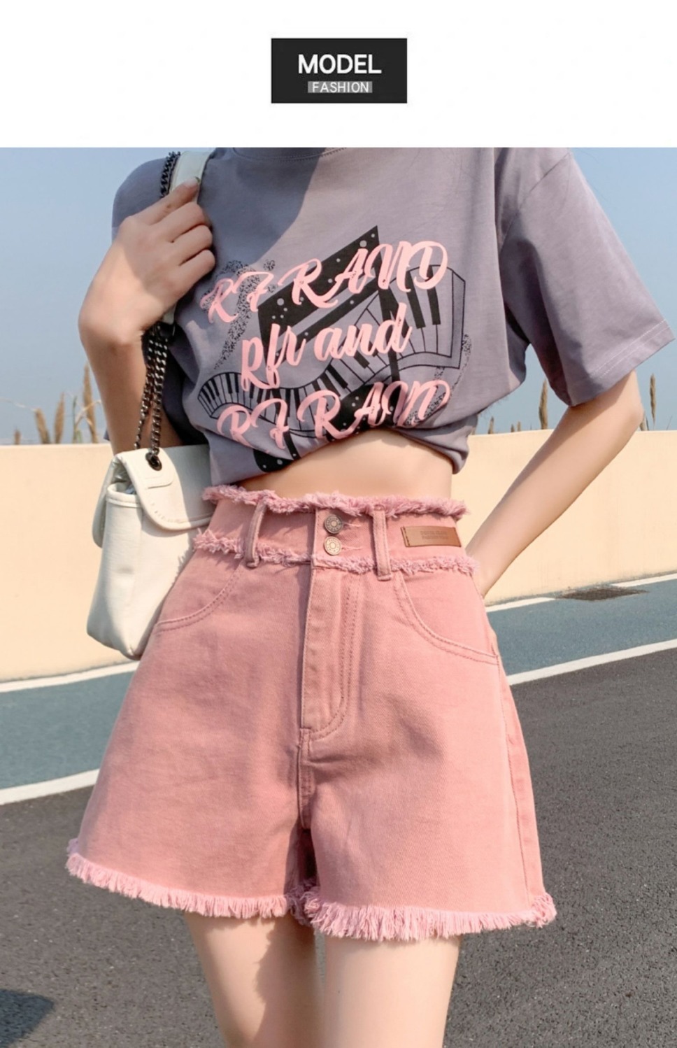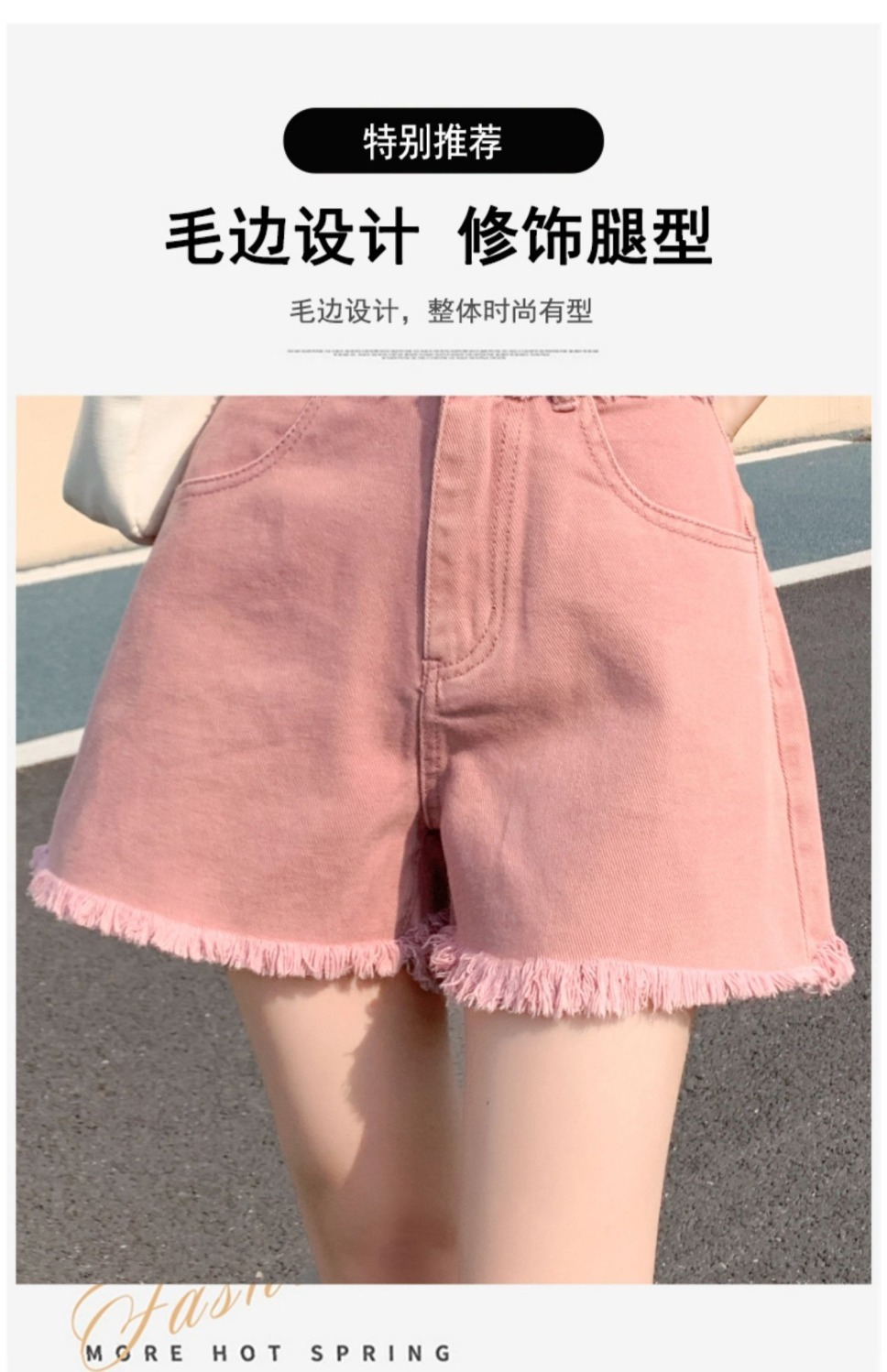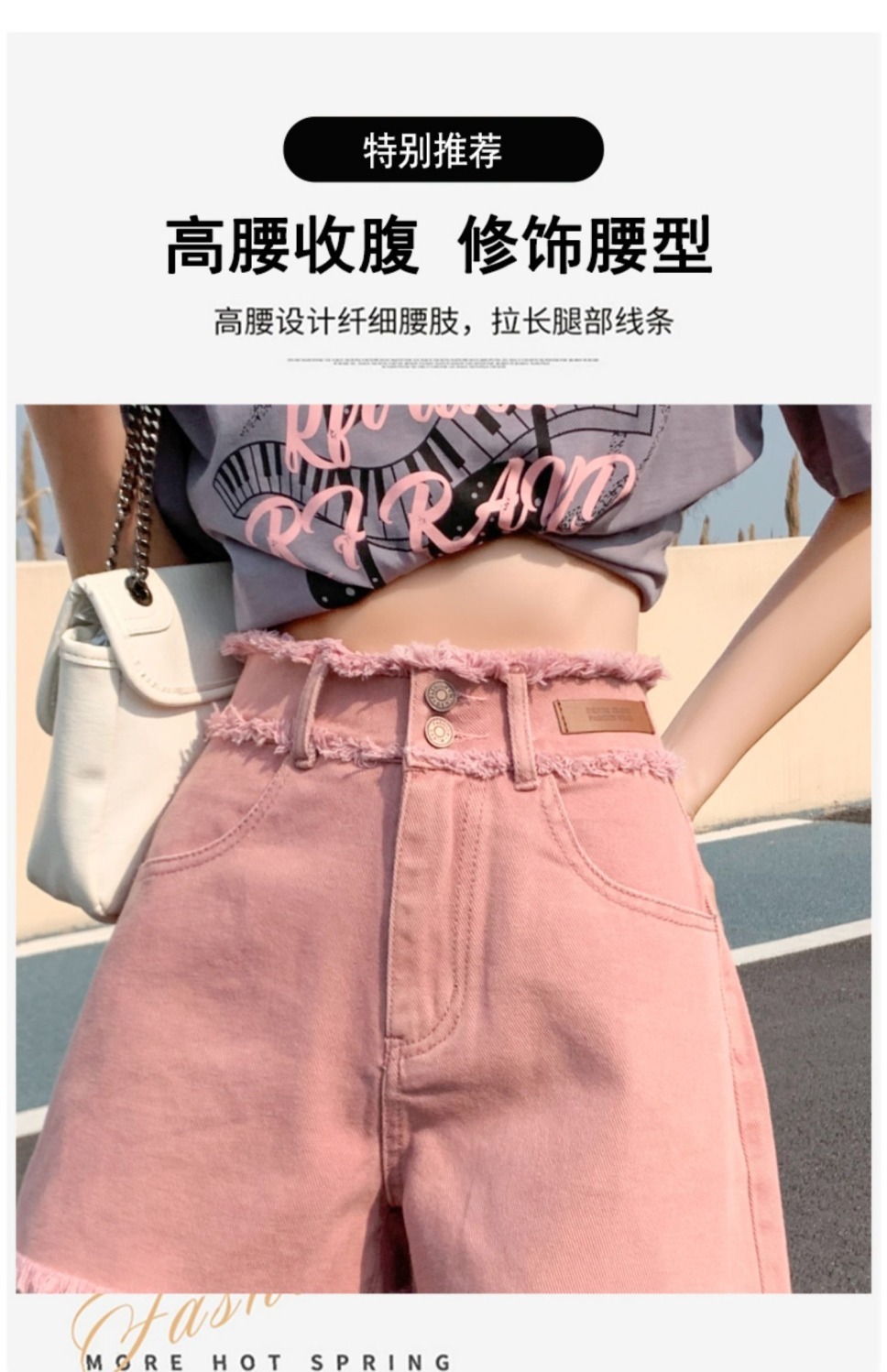 더티핑크 데님 반바지 여자 여름 2024 새로운 높은 허리 슬리밍 느슨한 램 엣지 핫 팬츠스토어 가기
