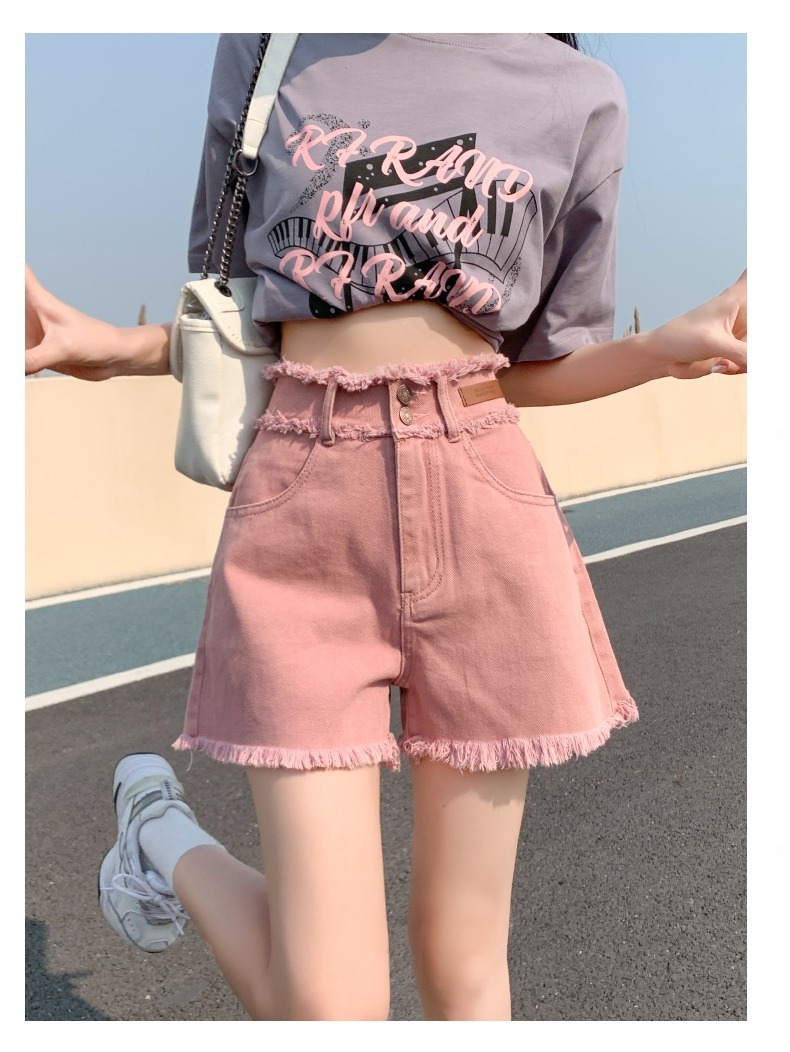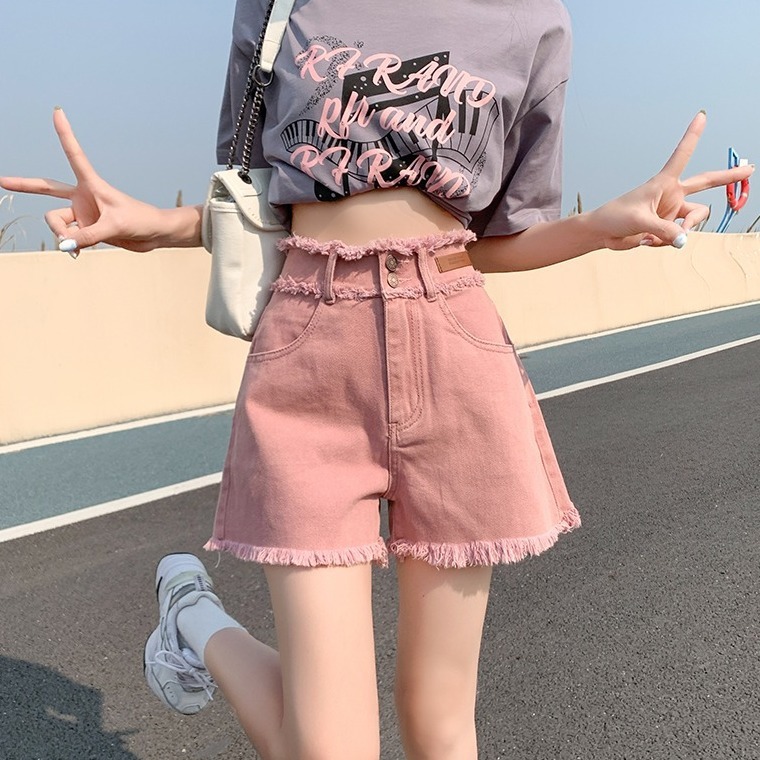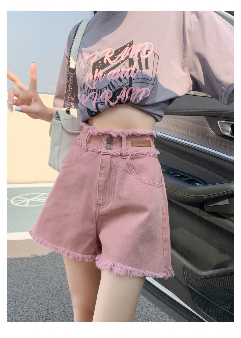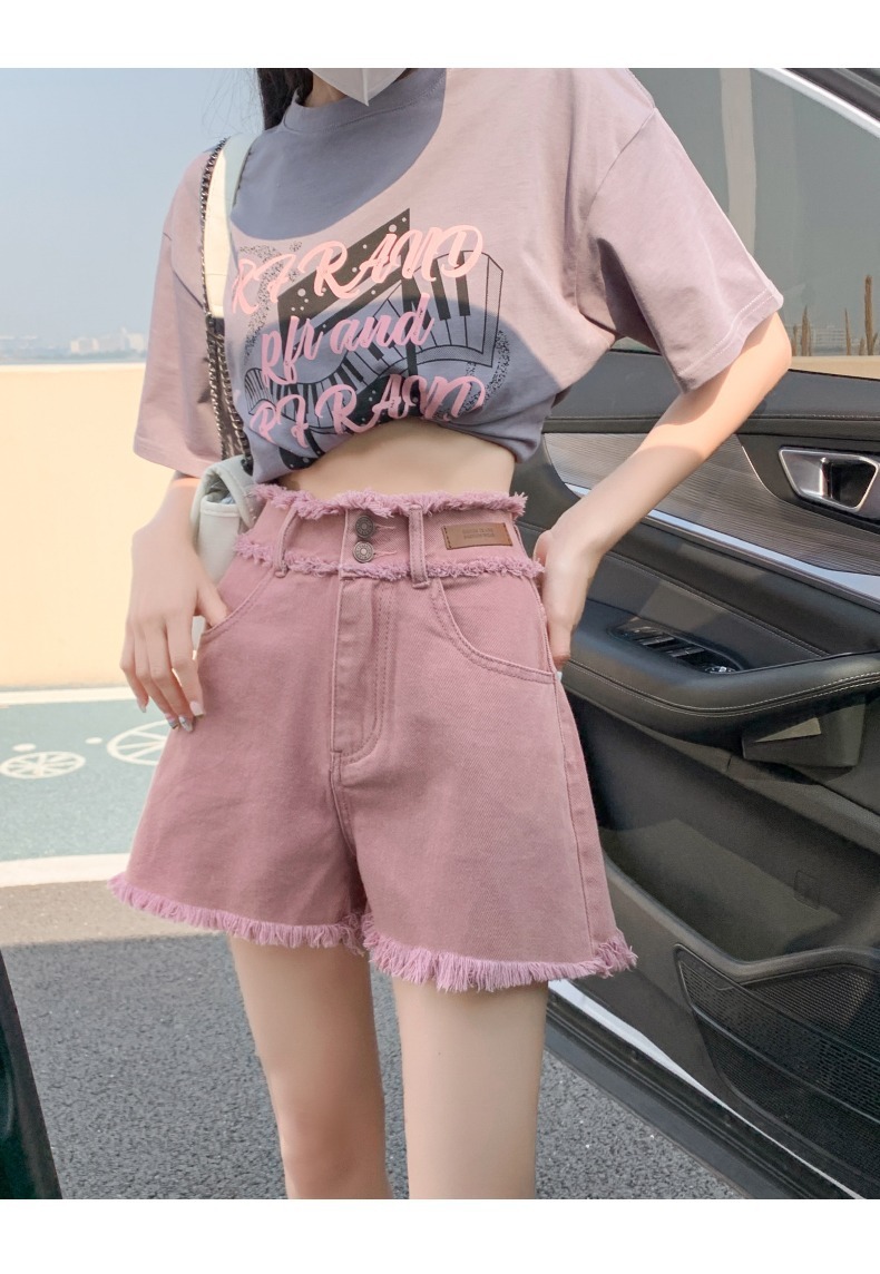 더티핑크 데님 반바지 여자 여름 2024 새로운 높은 허리 슬리밍 느슨한 램 엣지 핫 팬츠