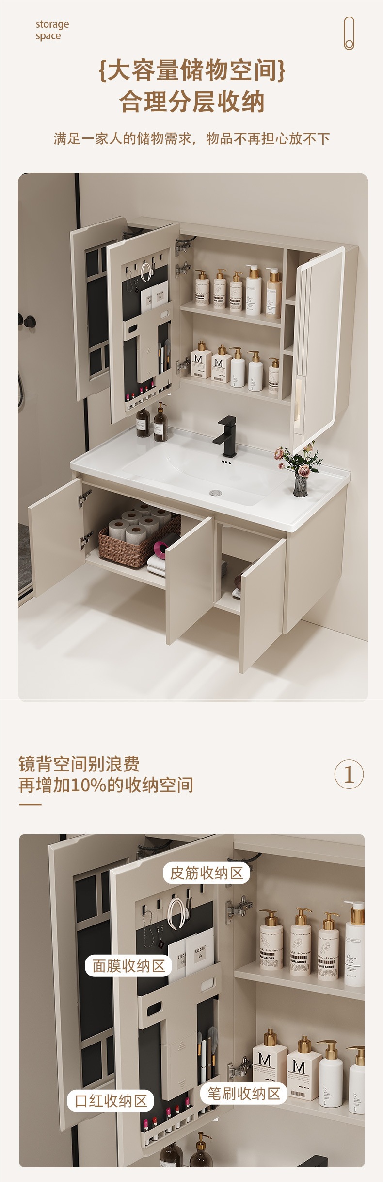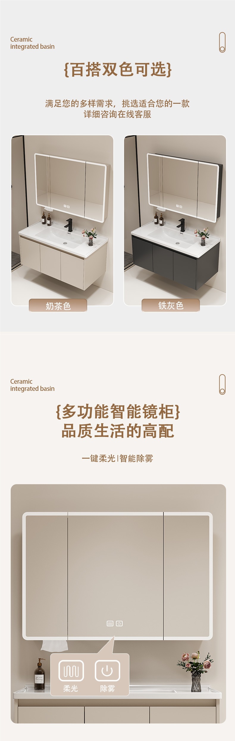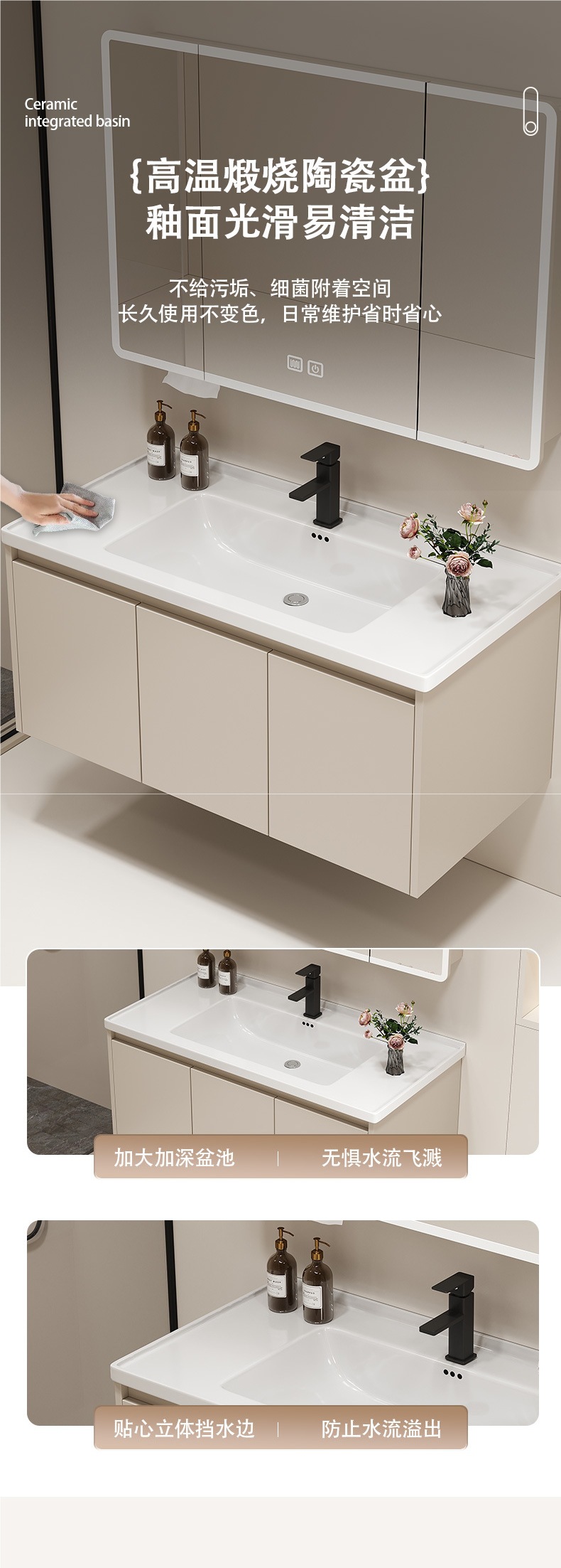 • C2 크림 80*40cm 세라믹 세면대 캐비닛 [스마트 거울 캐비닛]