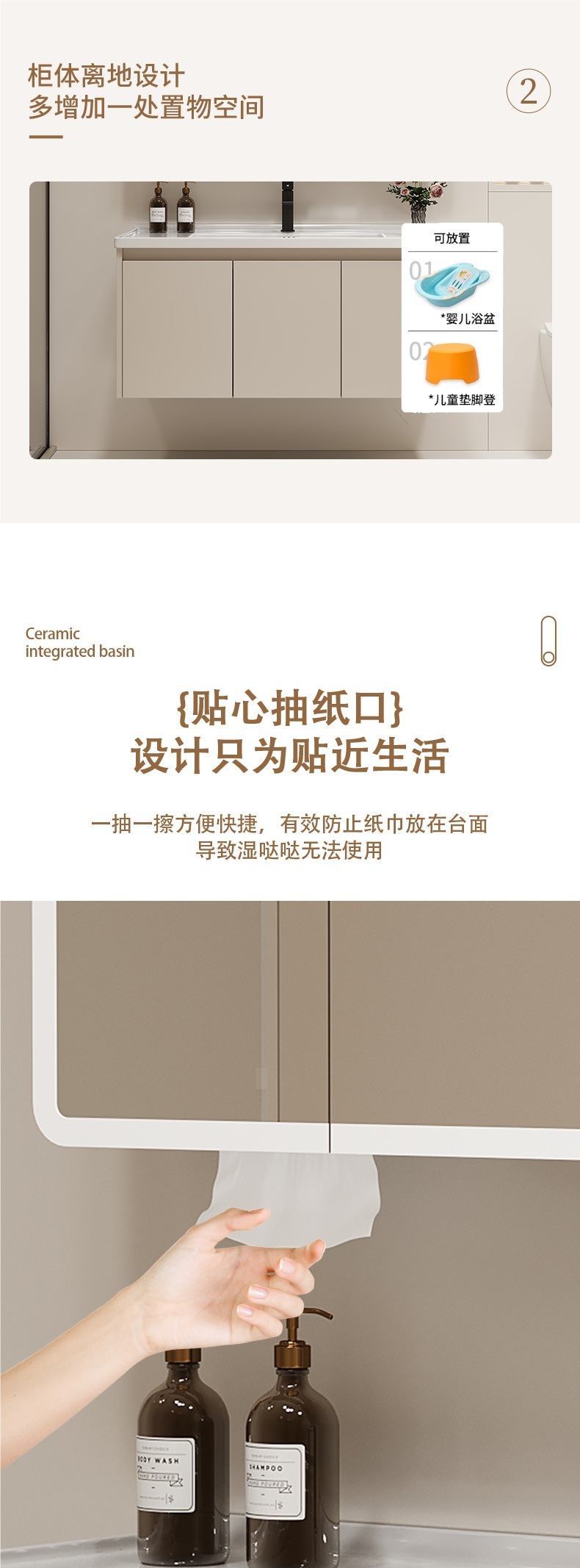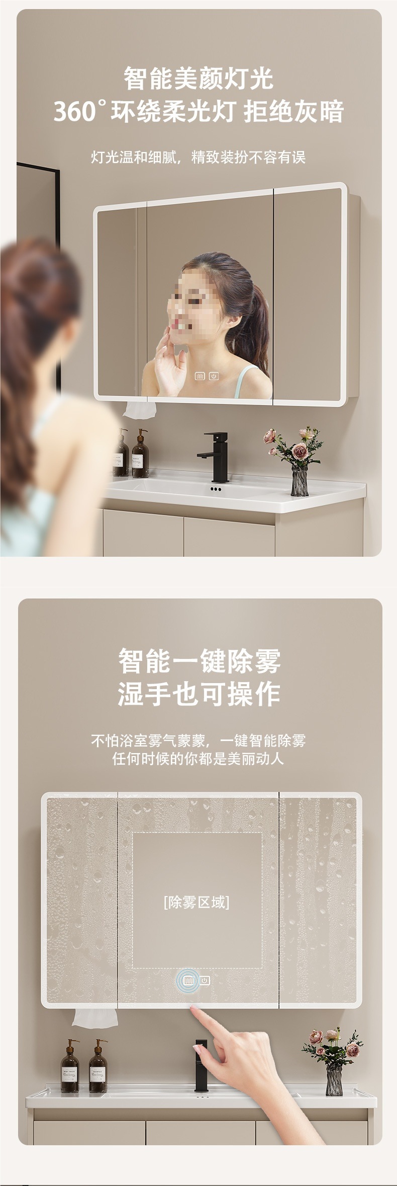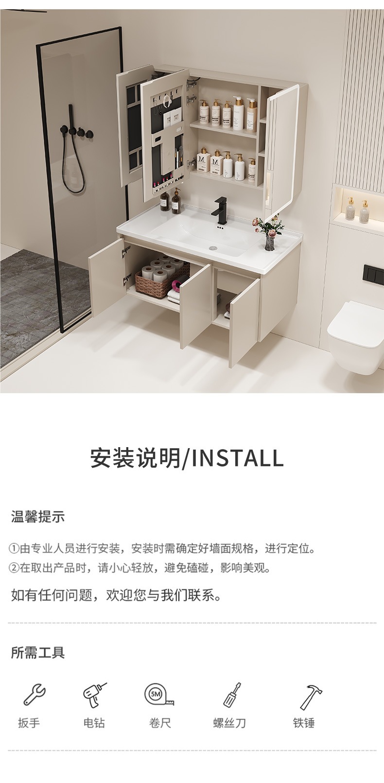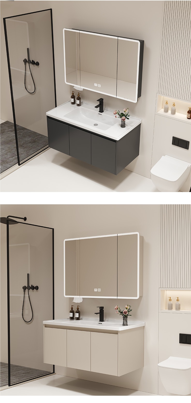 • C2 크림 80*40cm 세라믹 세면대 캐비닛 [스마트 거울 캐비닛]