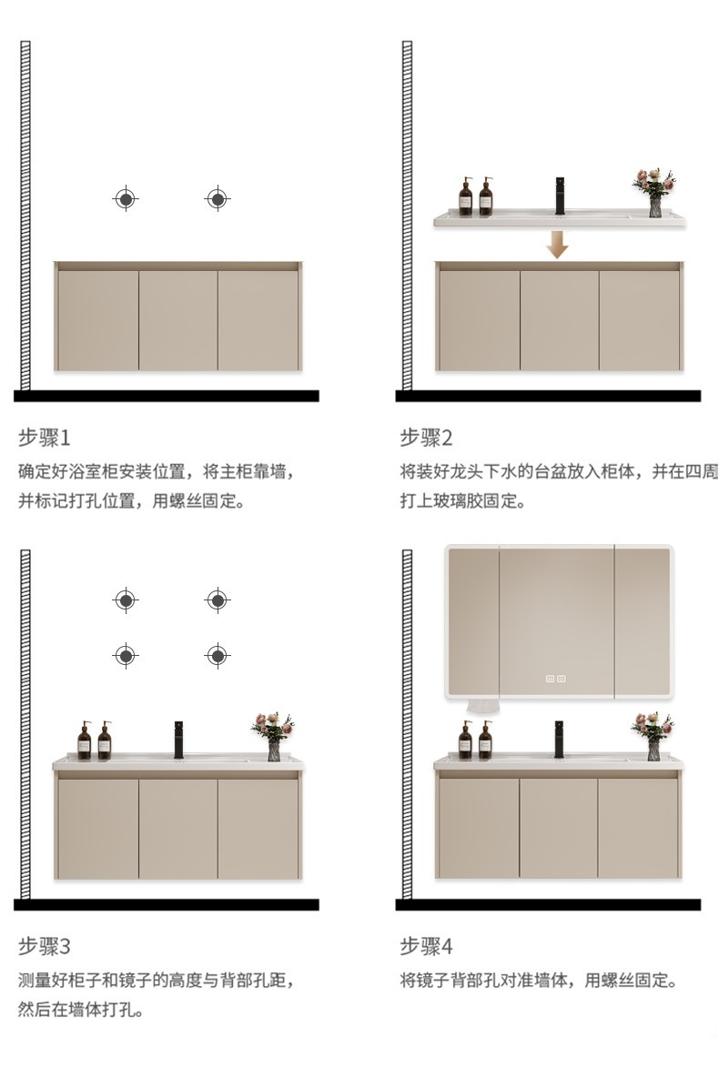 • C2 크림 80*40cm 세라믹 세면대 캐비닛 [일반 거울 캐비닛]