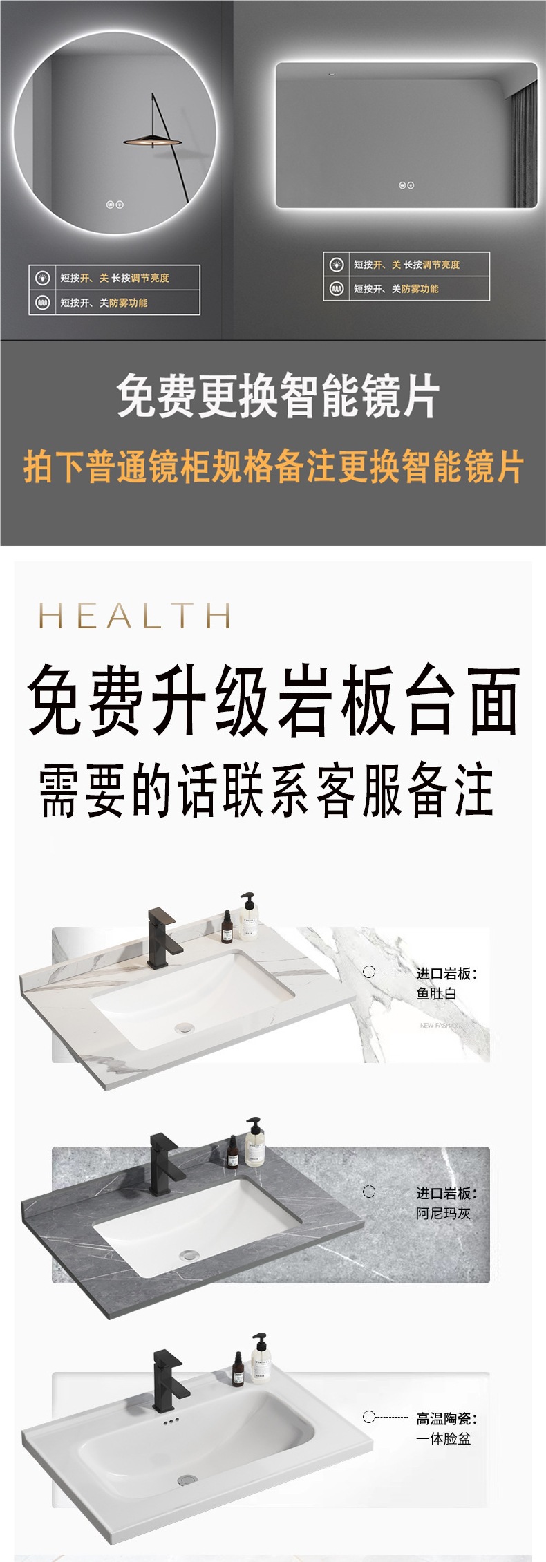 • C2 그레이 70*40cm 세라믹 세면대 캐비닛 [스마트 미러 캐비닛]